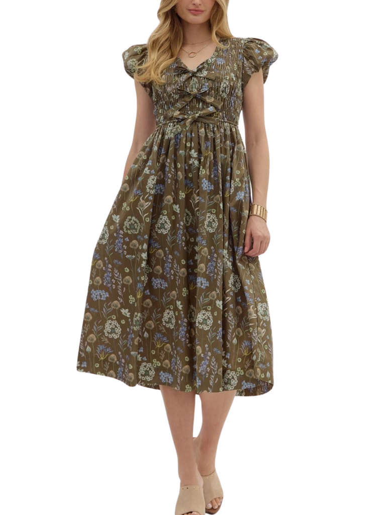 Elegant Satin Side Knot Detail Draped Midi Dress