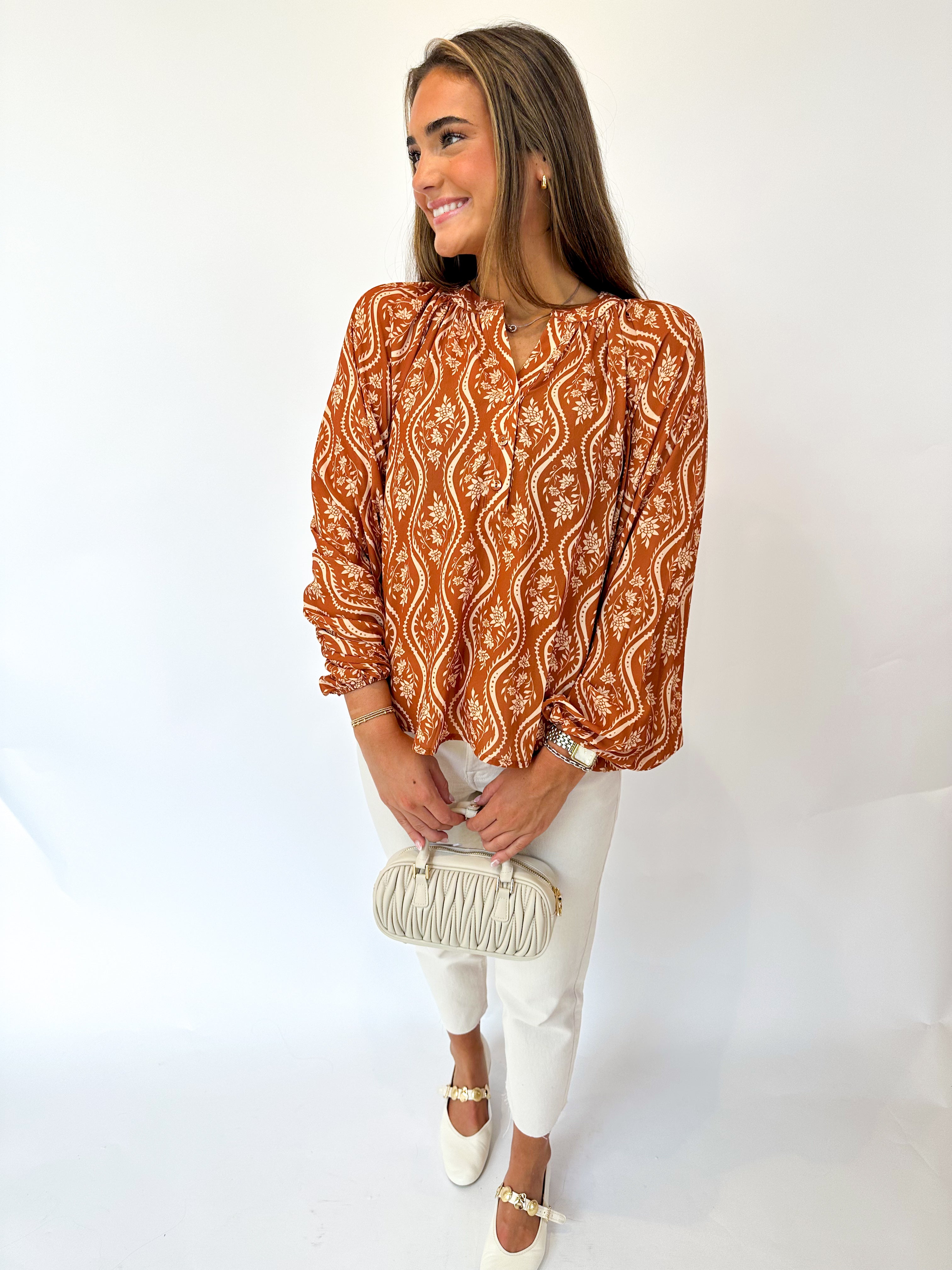 Elevate your wardrobe with the fall into Florals Top, designed for effortless style and comfort. This printed woven blouse features a flattering round neckline with a subtle V-front detail, adding a touch of sophistication. Long raglan sleeves provide a relaxed fit and freedom of movement, making it perfect for both casual and dressier occasions. Its lightweight fabric ensures all-day comfort while the unique print sets you apart with understated elegance.