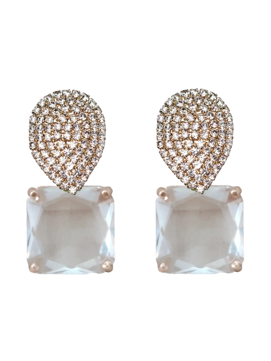 Clear Crystal Retro Pave Drop Earrings