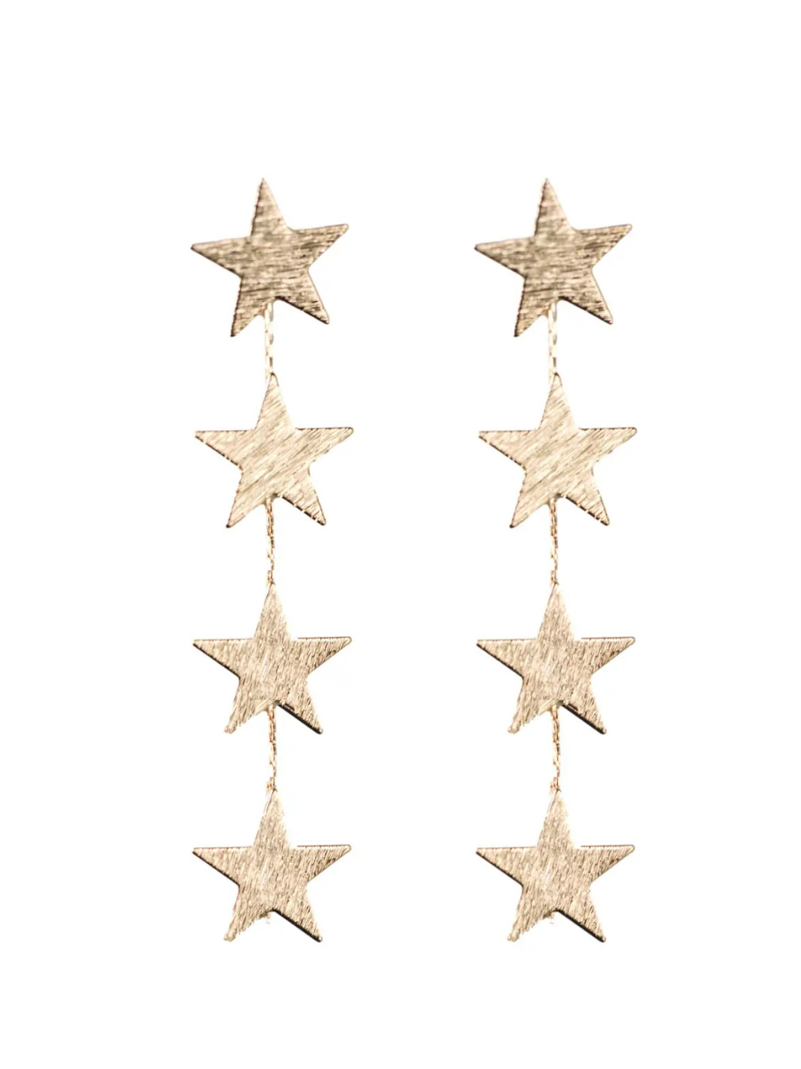 Twinkle all day long with these celestial-inspired gold star drop earrings. Perfect for adding a touch of sparkle to any outfit, these lightweight dusters catch the light beautifully and pair effortlessly with your everyday style. A little star power never hurt anyone.