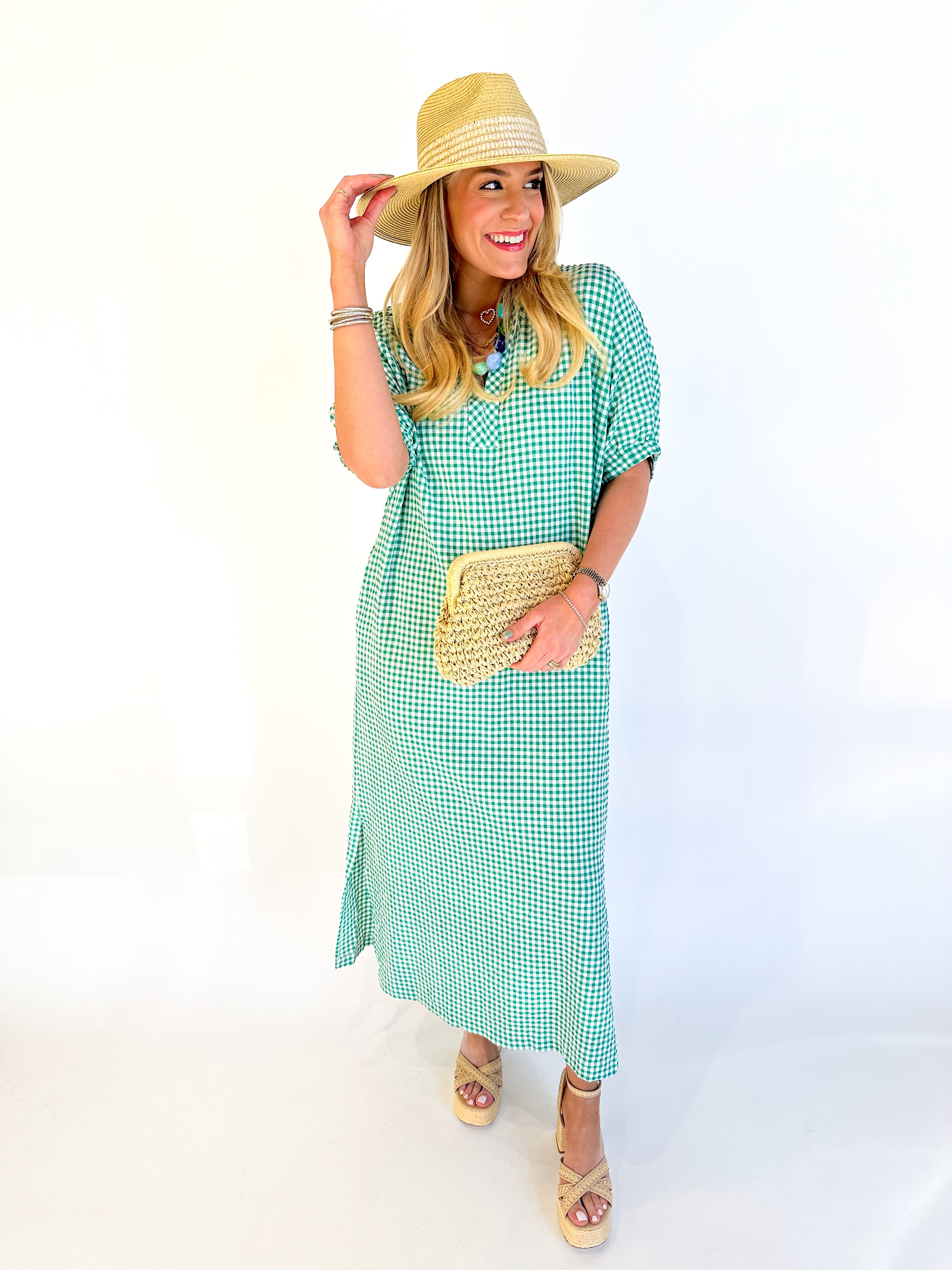 Effortlessly charming in classic gingham, this midi dress features romantic puff sleeves and a gracefully flowing silhouette. Crafted from lightweight fabric, it's perfect for warm days and versatile enough to dress up or down. A timeless piece that transitions seamlessly from brunch to evening plans.