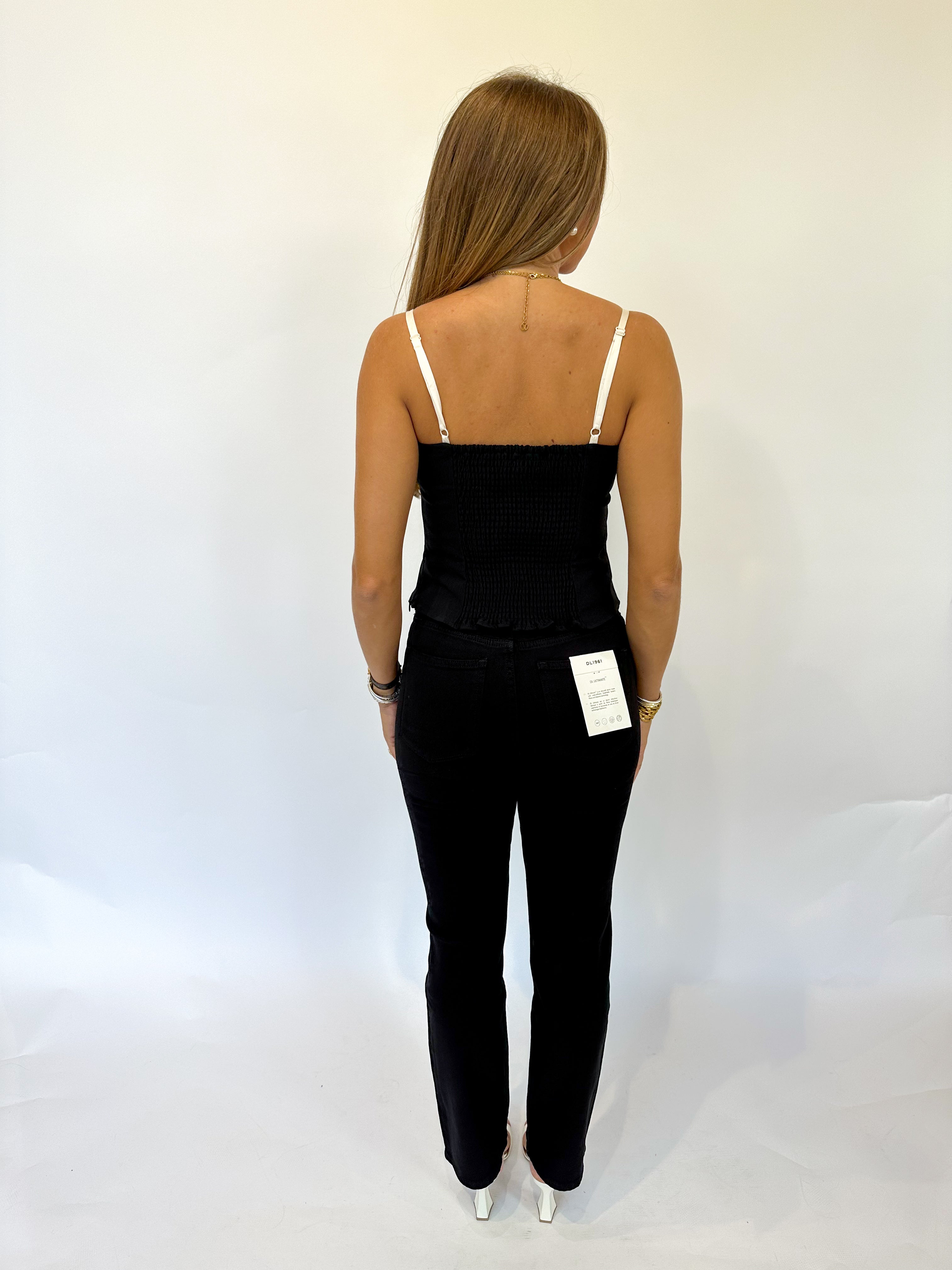Discover the Halle Straight Leg Denim in Black Peach—a high-rise, straight leg jean with a 29" inseam designed for both comfort and style. Crafted with sculpt technology, these jeans offer a flattering fit that enhances your silhouette while staying comfortable all day. The Black Peach wash is super soft and resistant to fading, ensuring your denim looks fresh and sleek wear after wear.