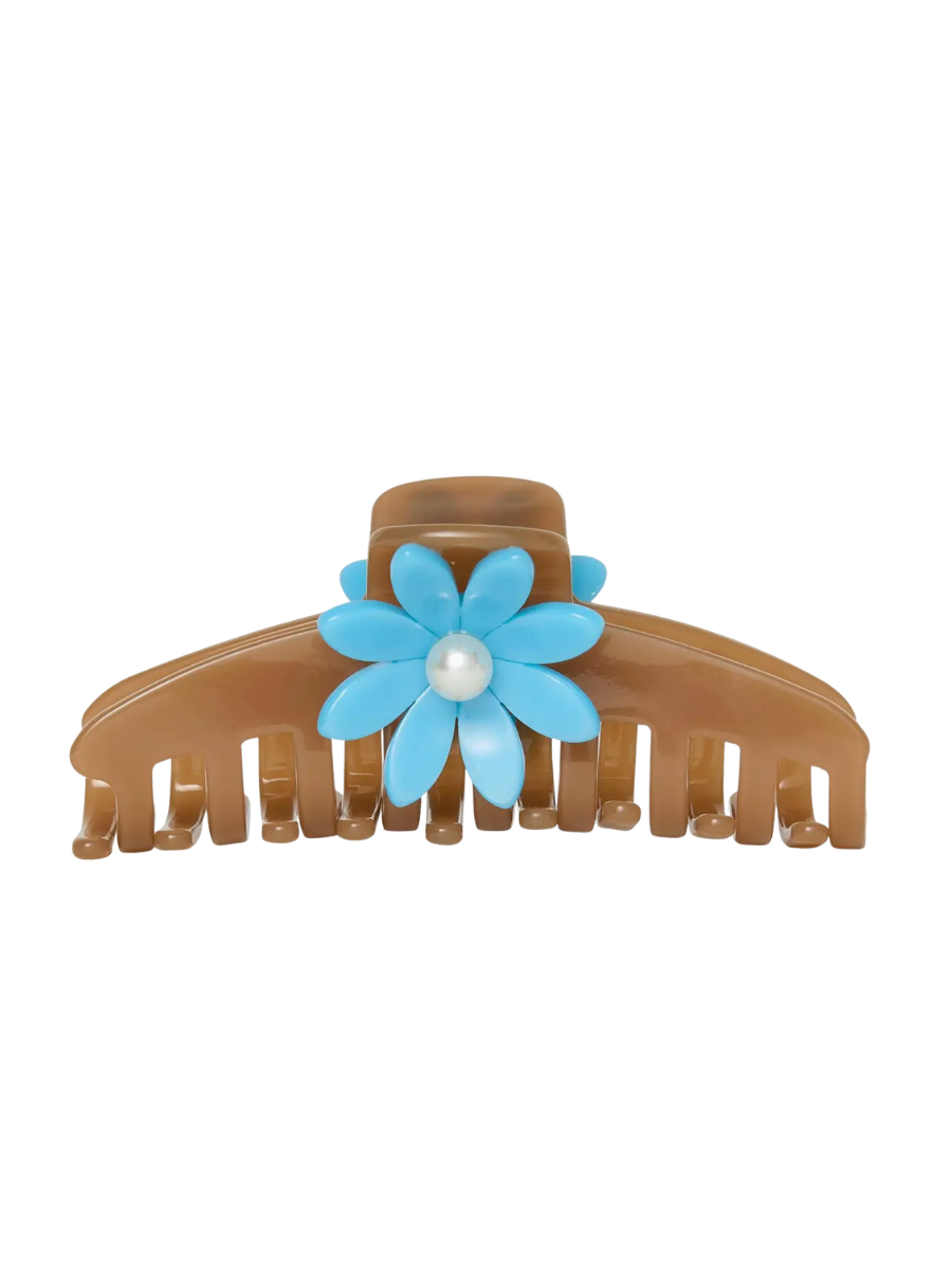 Elevate your hair game with this stunning caramel claw clip, featuring intricate 3D blue daisy details on both sides. The warm caramel tone complements any hair color while the dimensional floral embellishment adds a touch of whimsy and sophistication. Perfect for securing thick or thin hair with a secure grip, this clip is both functional and fashion-forward. A must-have accessory for anyone who loves nature-inspired style.