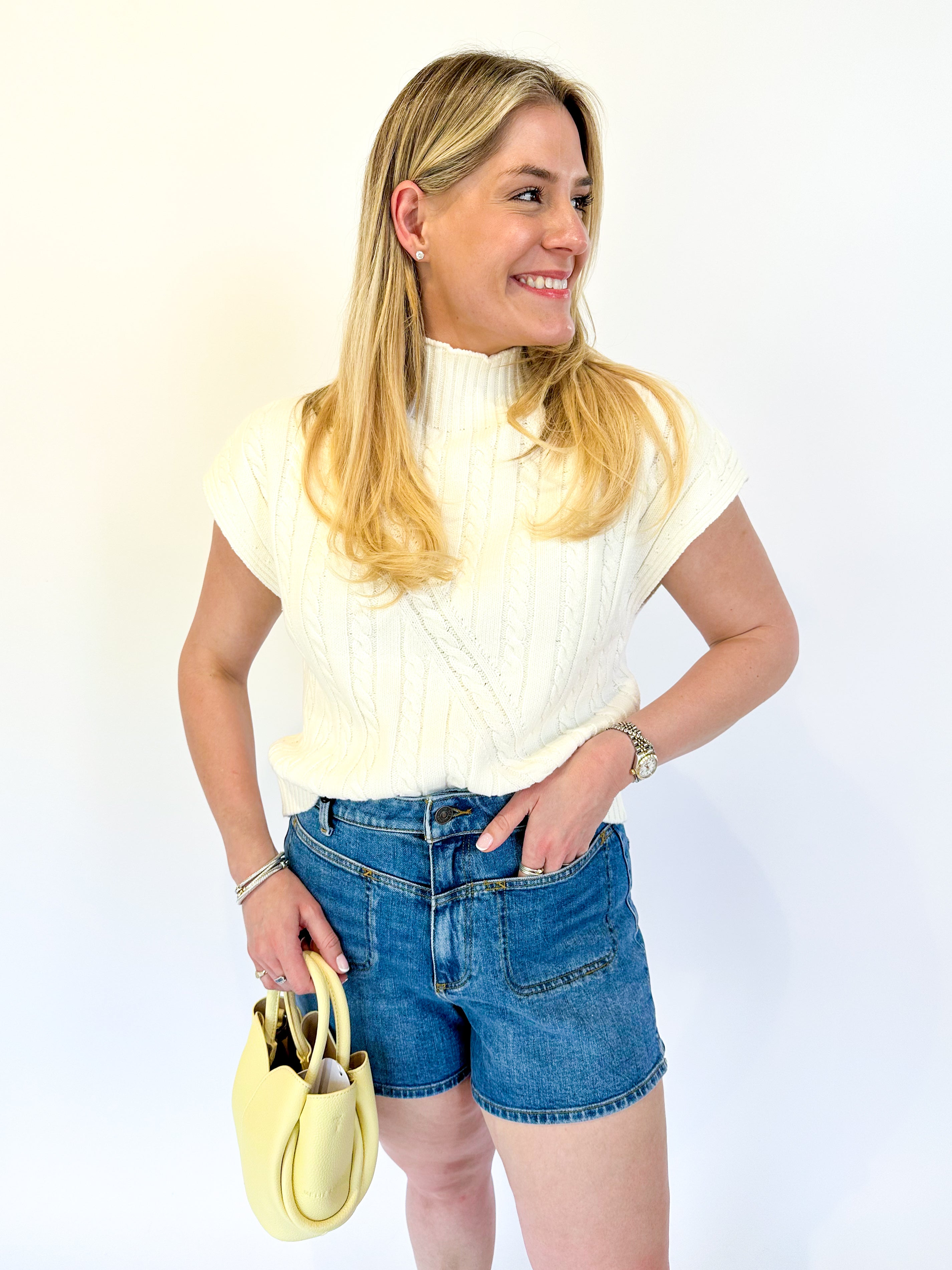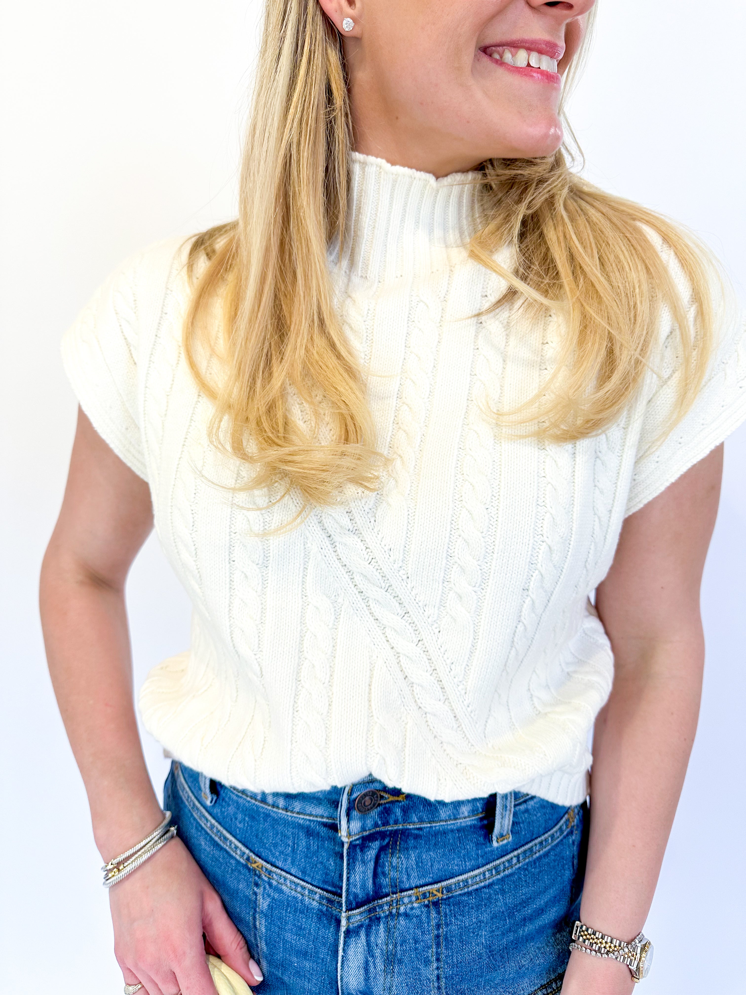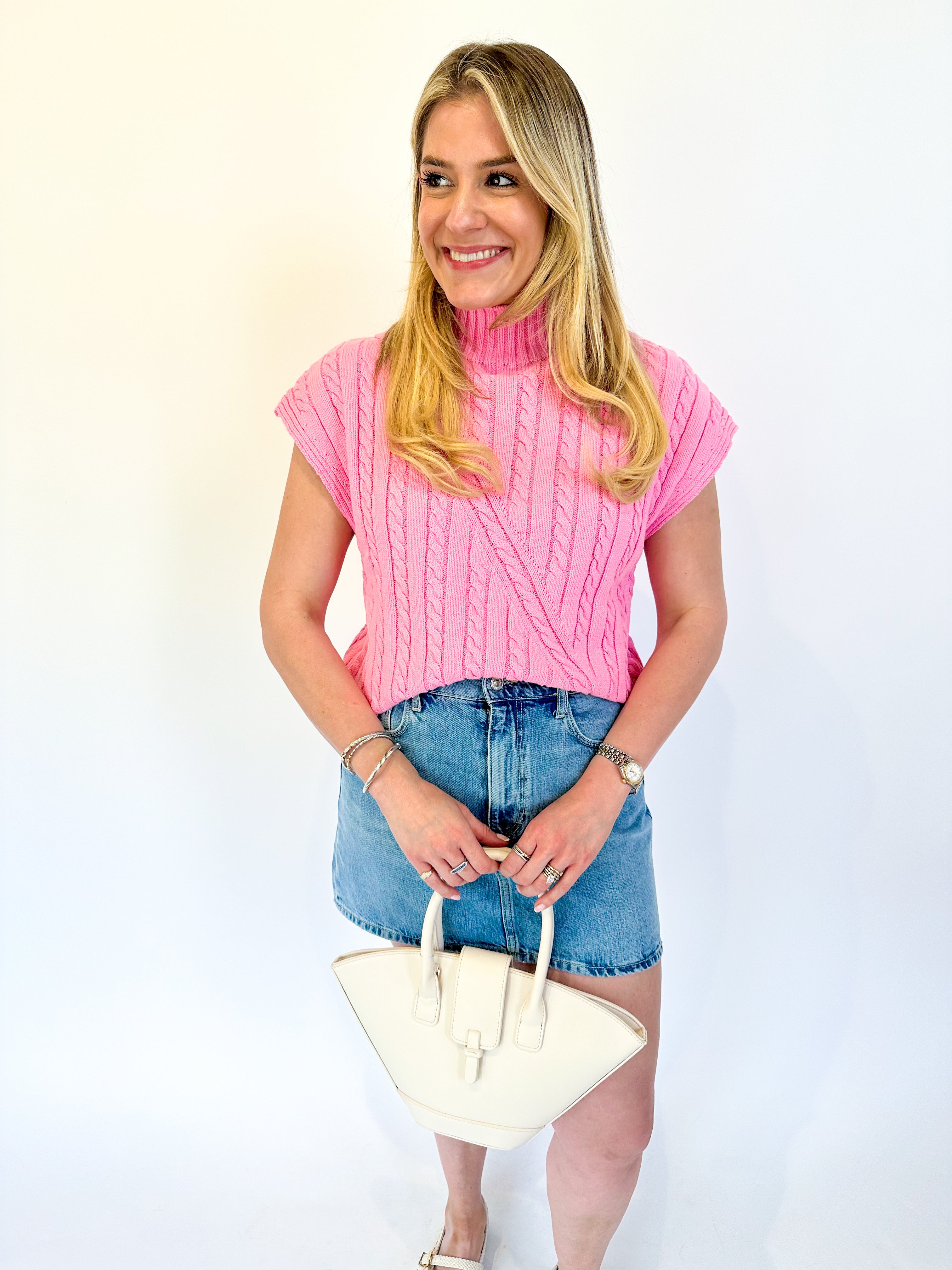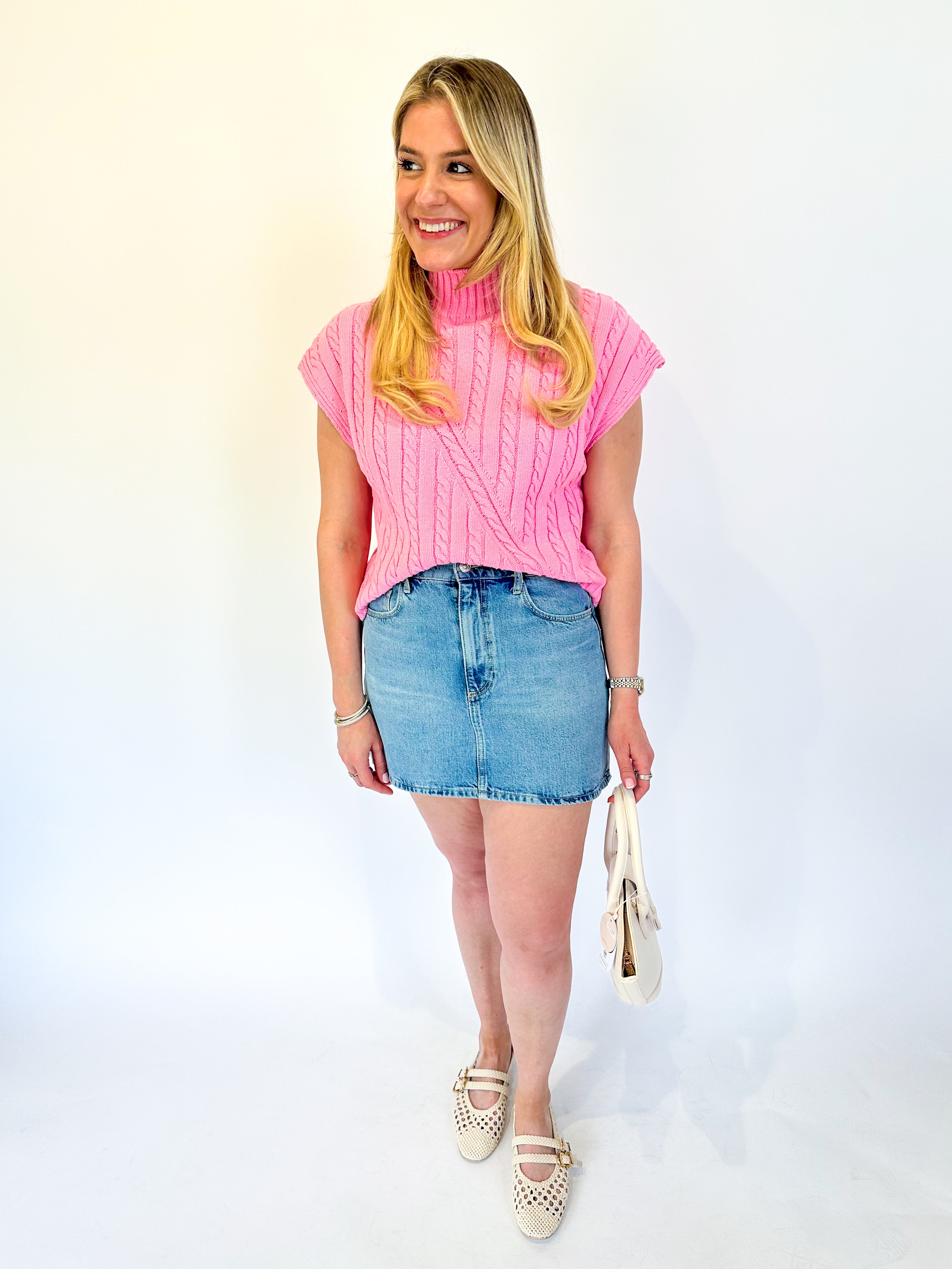 Layer this versatile knit mock neck sleeveless sweater into your spring wardrobe for effortless style. The clean silhouette works beautifully over tees or worn solo, while the mock neck adds polished structure. Available in soft pink and classic ivory, it's the essential piece you'll reach for season after season.