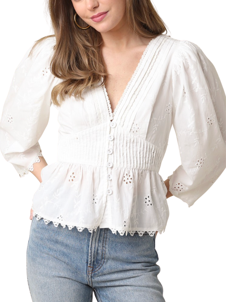 Our Maje pin tuck Peplum Blouse features a delicate pin tuck detailing with a button-front V-neckline and a soft peplum hem with subtle scalloped edge for a feminine finish.