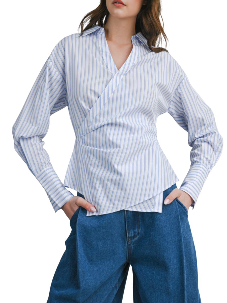Pin Striped Wrap-style Side Button Closure Shirt