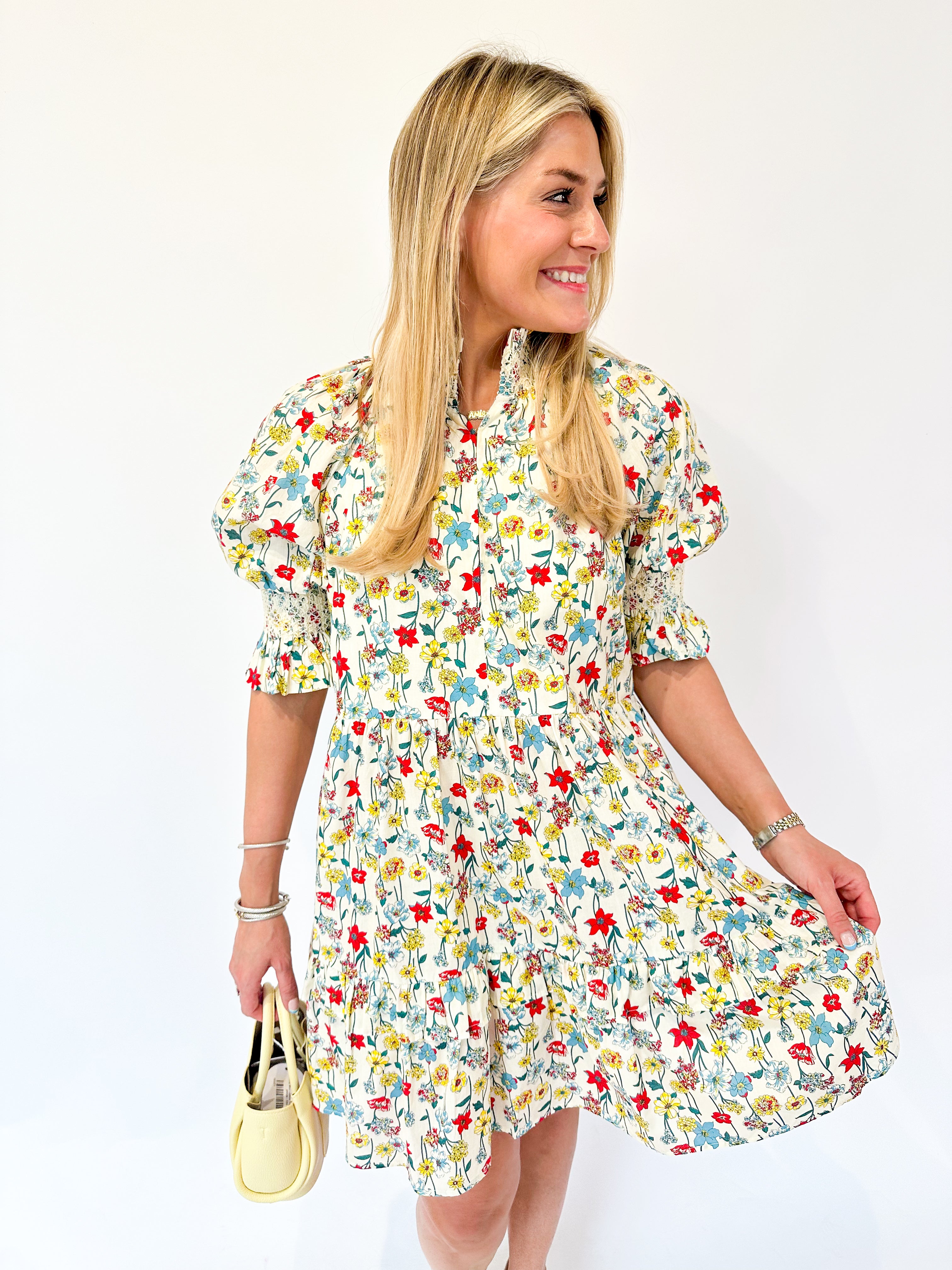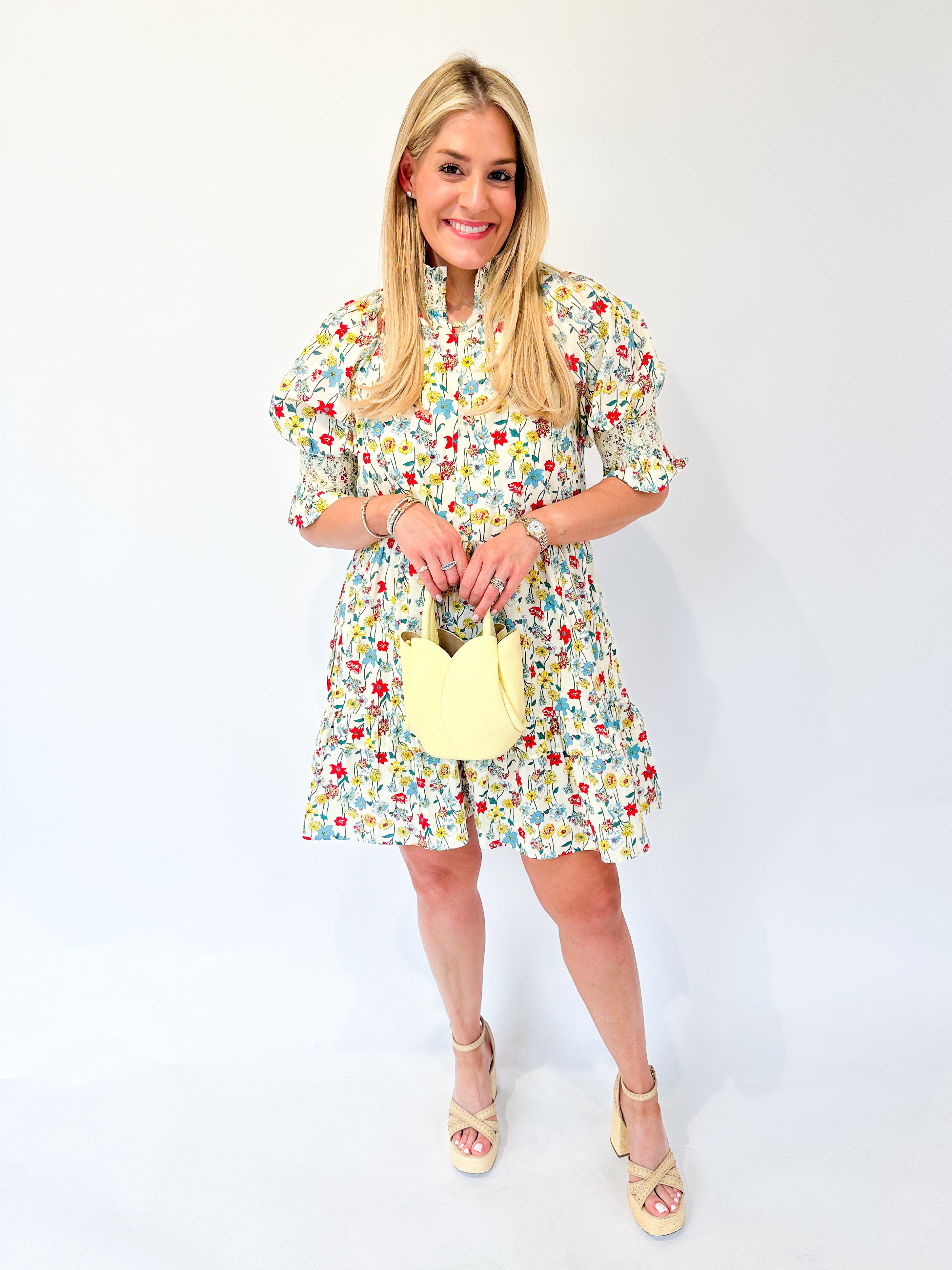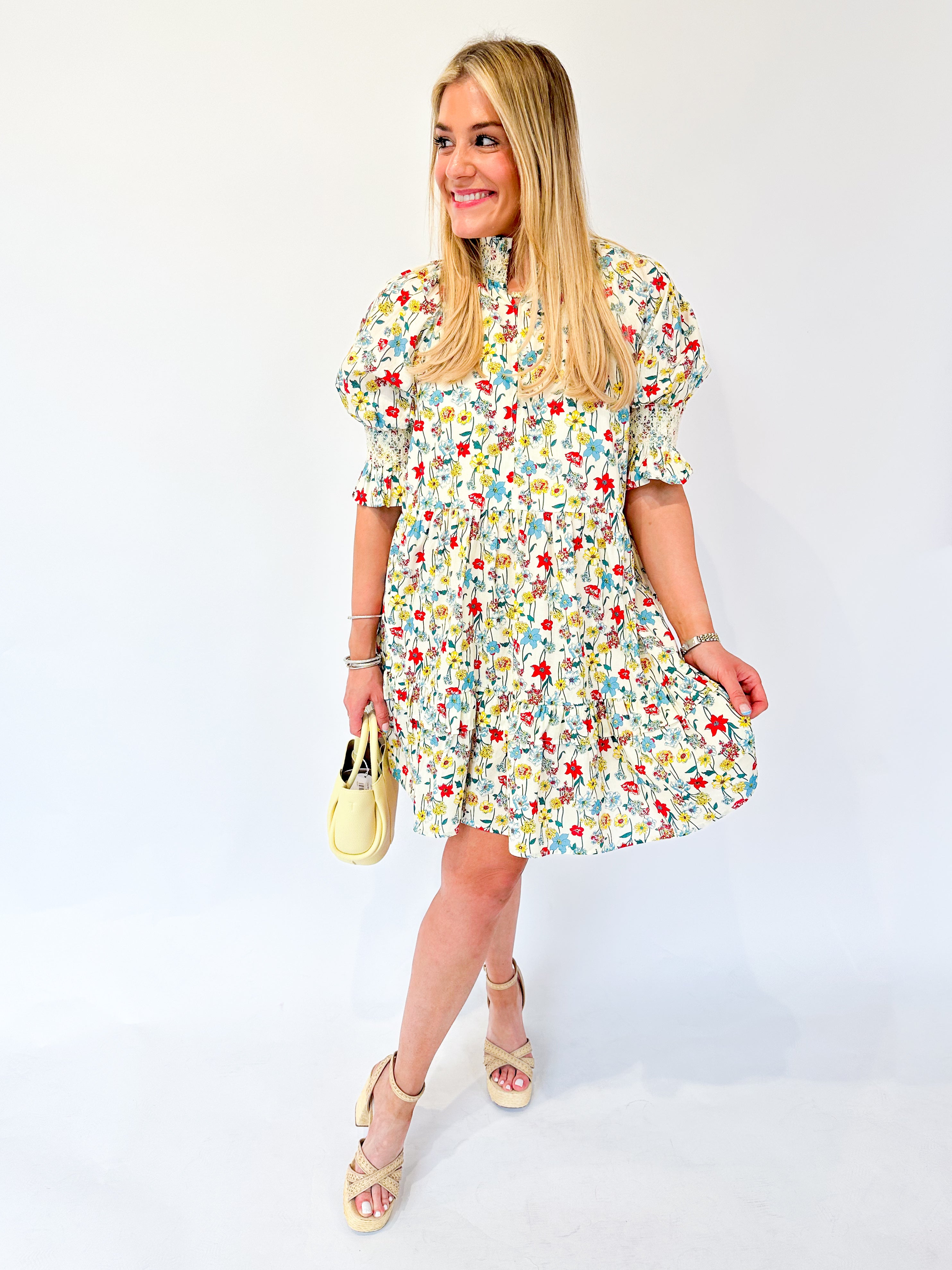 Smocked Puff Sleeve Floral Mini Dress