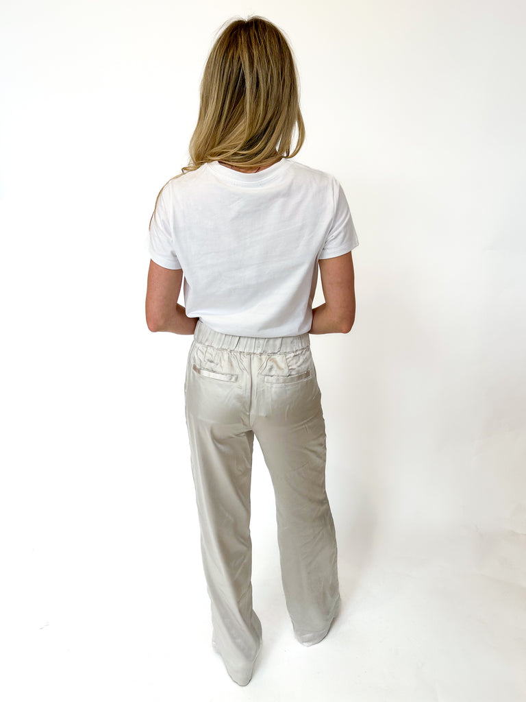 Elevate your everyday style with this relaxed fit tee featuring eye-catching silver embellishments that add just the right amount of sparkle. Perfect for dressing up casual looks or keeping things effortlessly chic, this versatile piece transitions seamlessly from day to night. Comfortable, stylish, and undeniably on-trend.