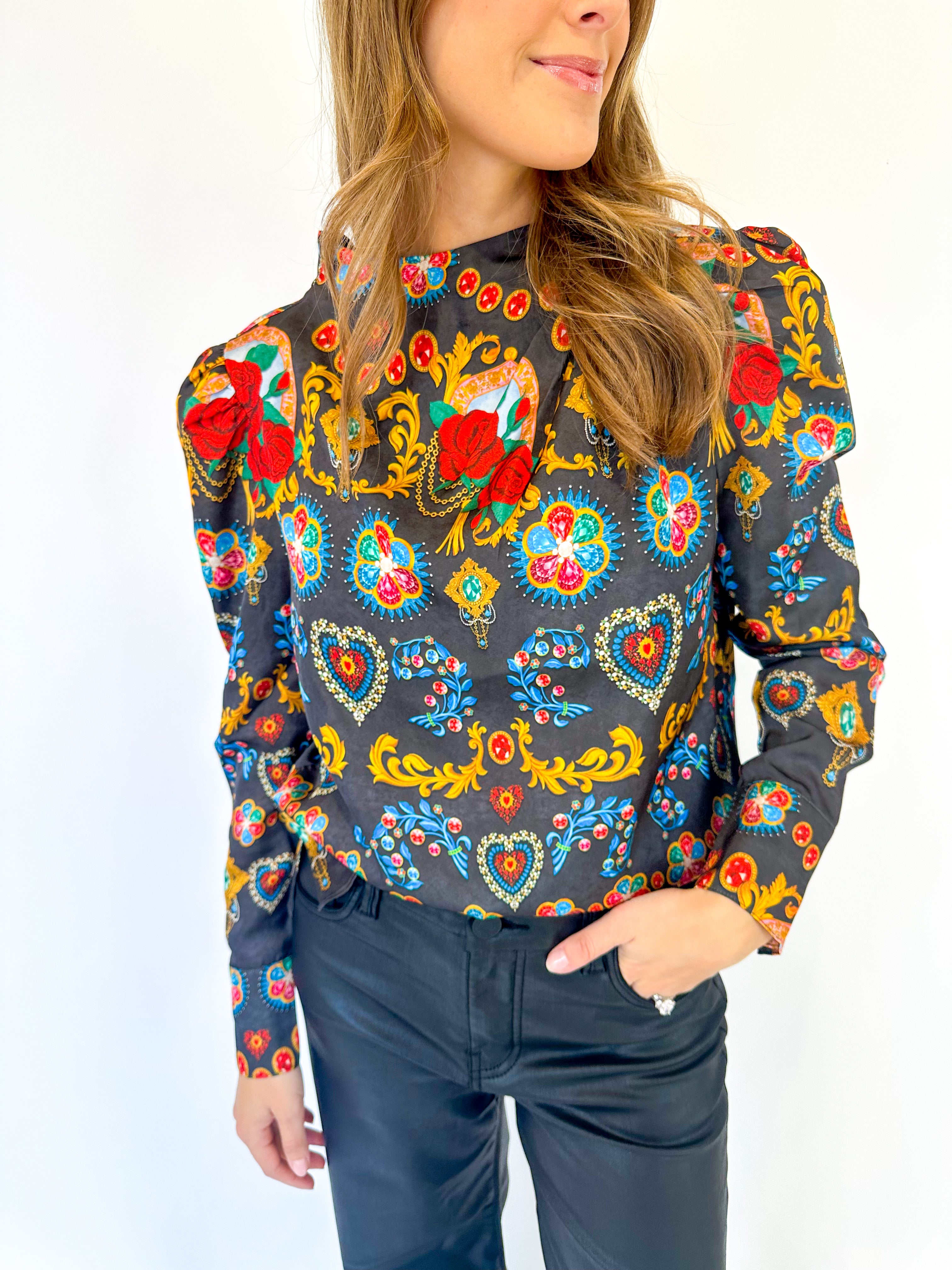 Calling all boss babes! The Scarlett Top is a perfect day to night option for a busy work day at the office or a happy hour at 5. Featuring ruching, puff sleeves and button detailing at the wrists.