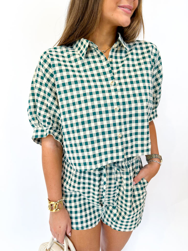 Gingham Cropped Button Shirt Short Set