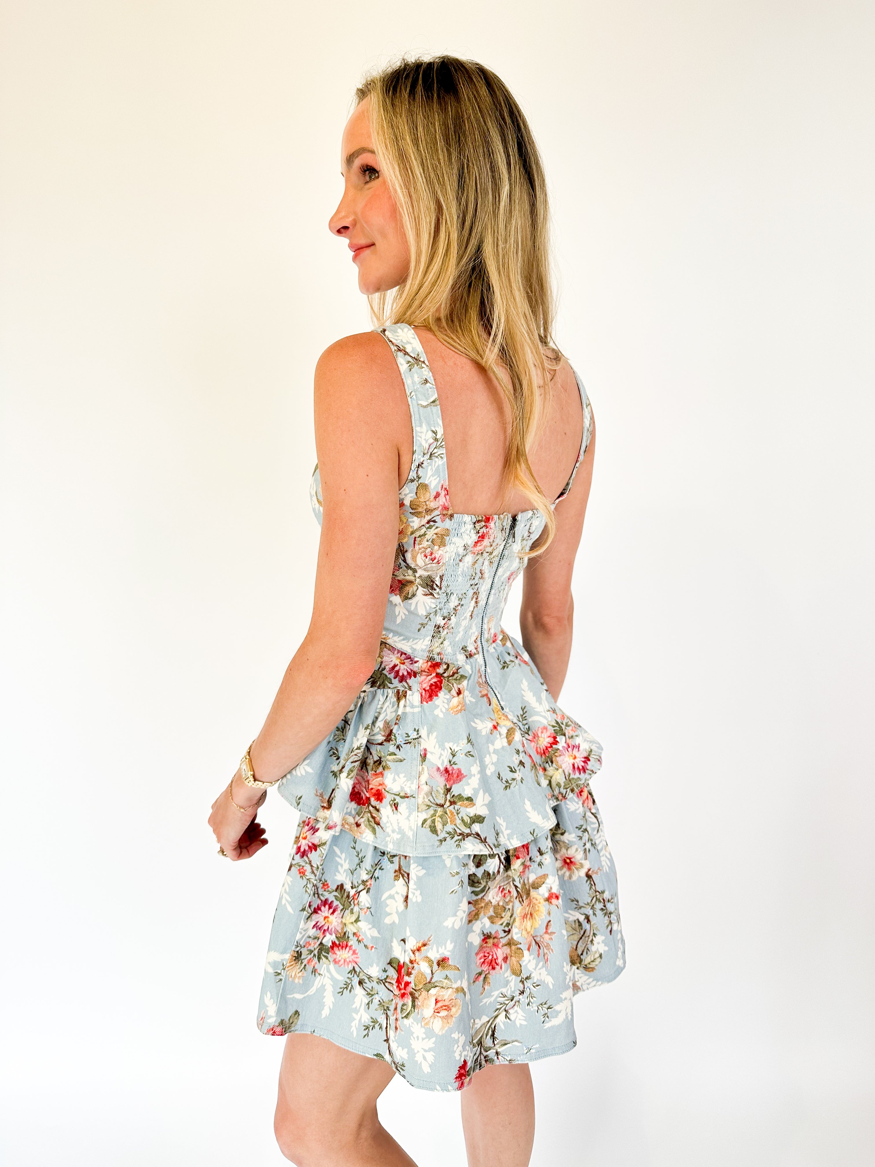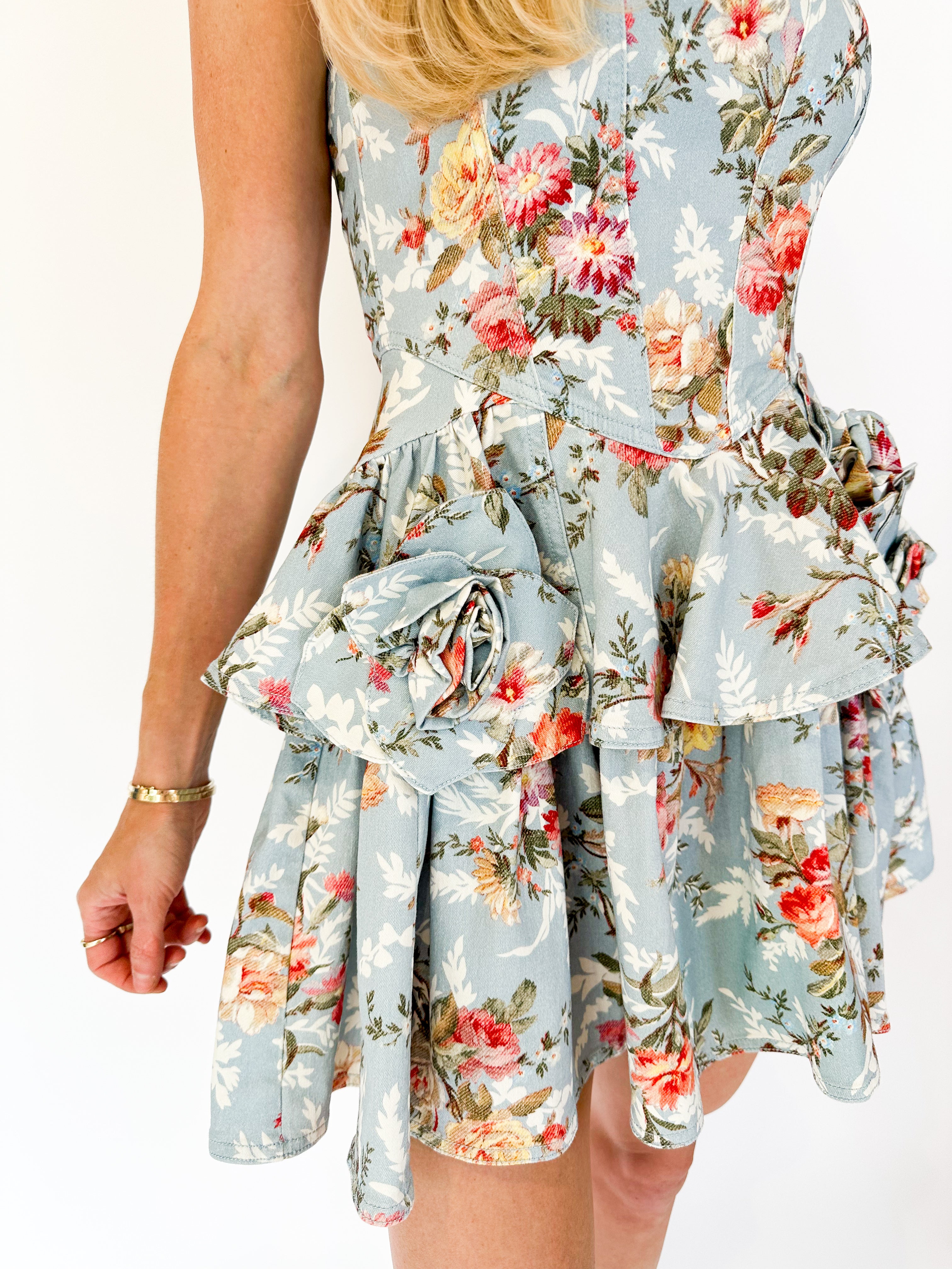 A standout piece from our collection, the Dale Mini Dress features our signature stretch denim with expertly crafted smocking at the back. The corset-like fit flatters your silhouette while intricate denim appliqued flowers adorn the skirt, adding an artistic touch. Perfect for making a statement at any occasion.