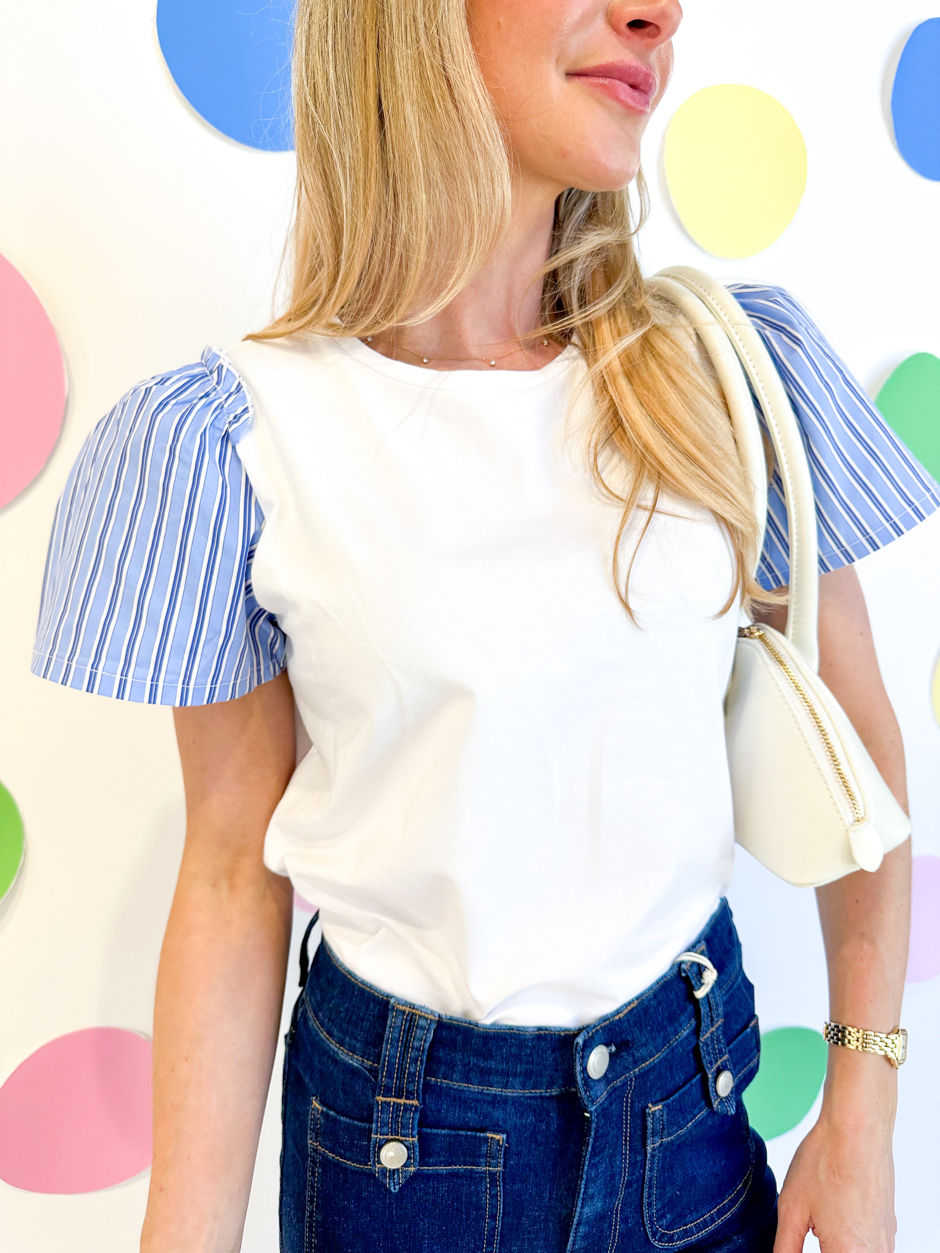 Raya Tee With Poplin Stripe Sleeves