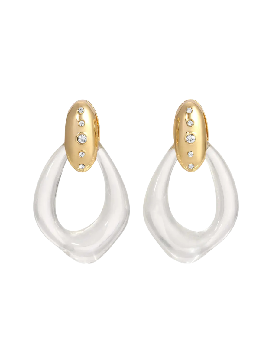 Capture the light with the Adele Clear Acrylic Drop Earrings. These earrings feature a beautiful acrylic loop design that shimmers like crystal-clear water, and they are finished with brilliant CZ stones. Perfect for warm summer days or nights, they add a touch of elegance and sparkle to any outfit.