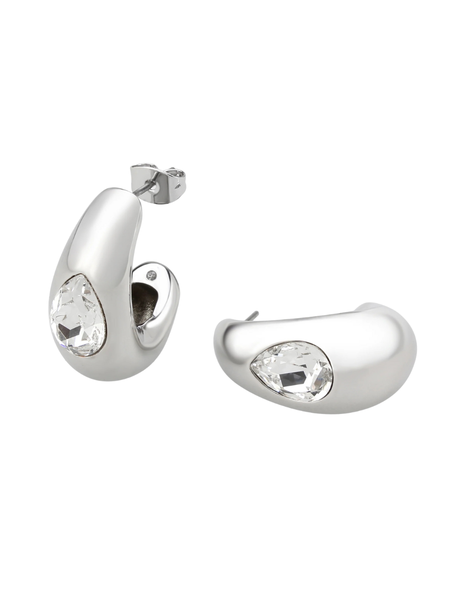Elevate your everyday style with the Aerosphere Huggie Hoop. Crafted in sleek silver, this delicate huggie features a sparkling rhinestone center that catches the light beautifully. Its comfortable, secure fit makes it perfect for all-day wear, adding a subtle touch of elegance to any outfit. Whether dressing up or down, these hoops bring effortless shine and sophistication to your look.