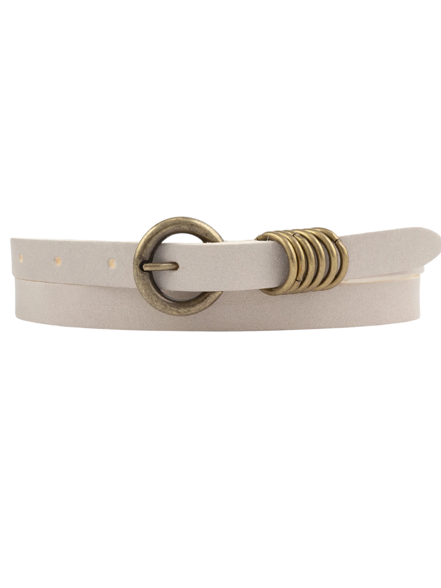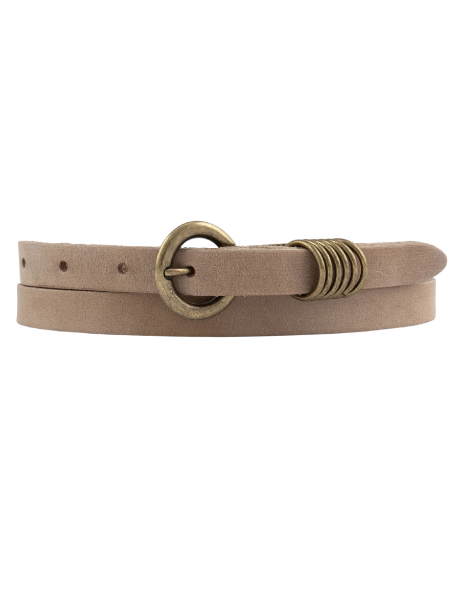 A perfectly subtle addition at your waist, the details of the antique gold keepers bring a touch of elegance to both a casual and professional look. Available in Taupe and Cream!