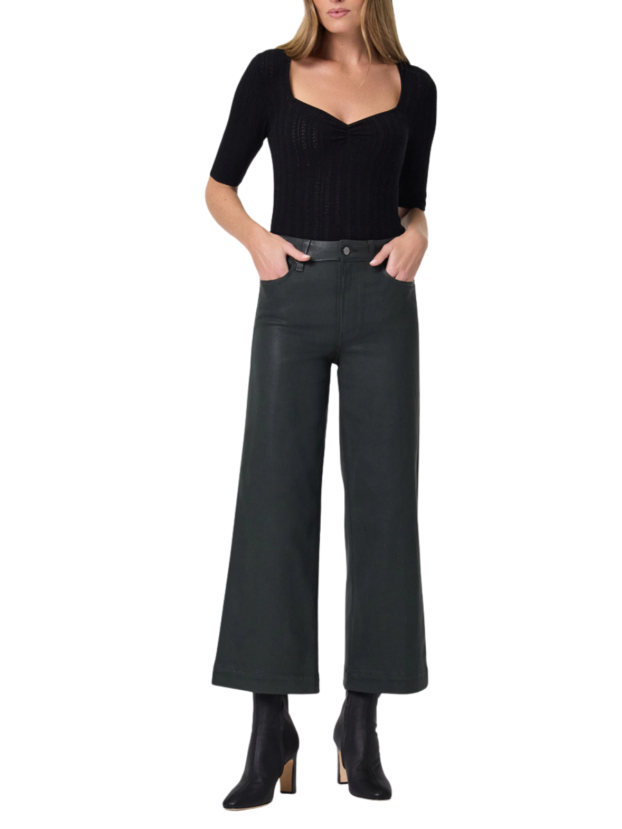 Anessa is our high-waisted wide leg with a slightly relaxed fit and an ankle length silhouette. In a deep green hue, this super flattering style is cut from our coated TRANSCEND denim, the original high-stretch fabric that redefined comfort in denim.