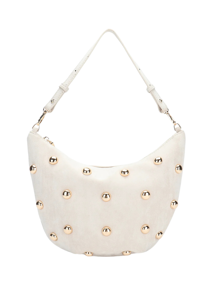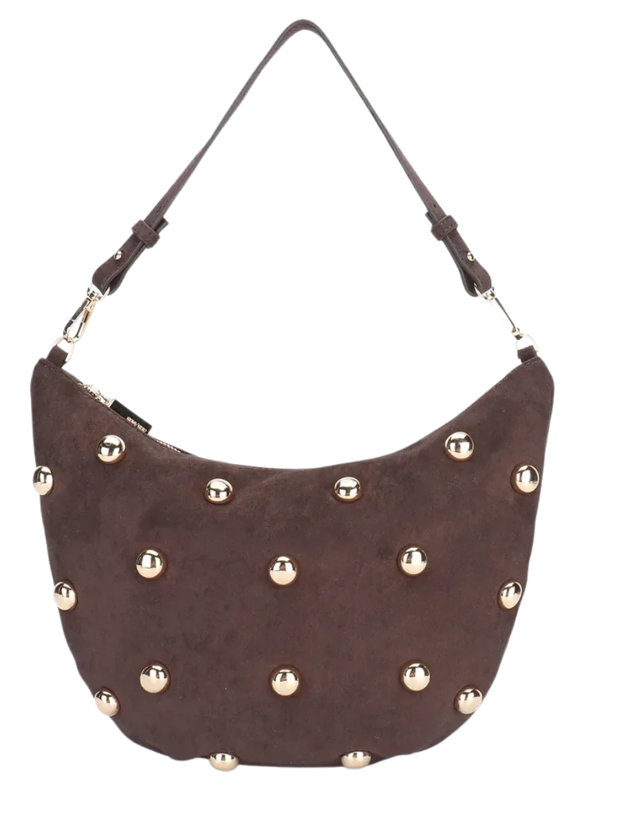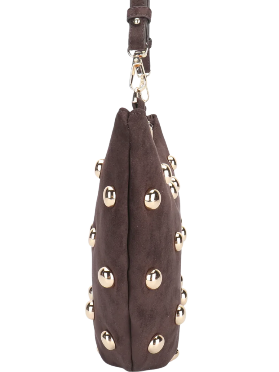 Elevate your style with the Annine Studded Crossbody, crafted from soft suede and accented with chic gold stud details. Designed for versatility, it includes two straps—one perfect for crossbody wear and another ideal for your shoulder—allowing you to switch up your look effortlessly. Available in four stunning colors, this bag adds a polished touch to any outfit while keeping your essentials close and secure.