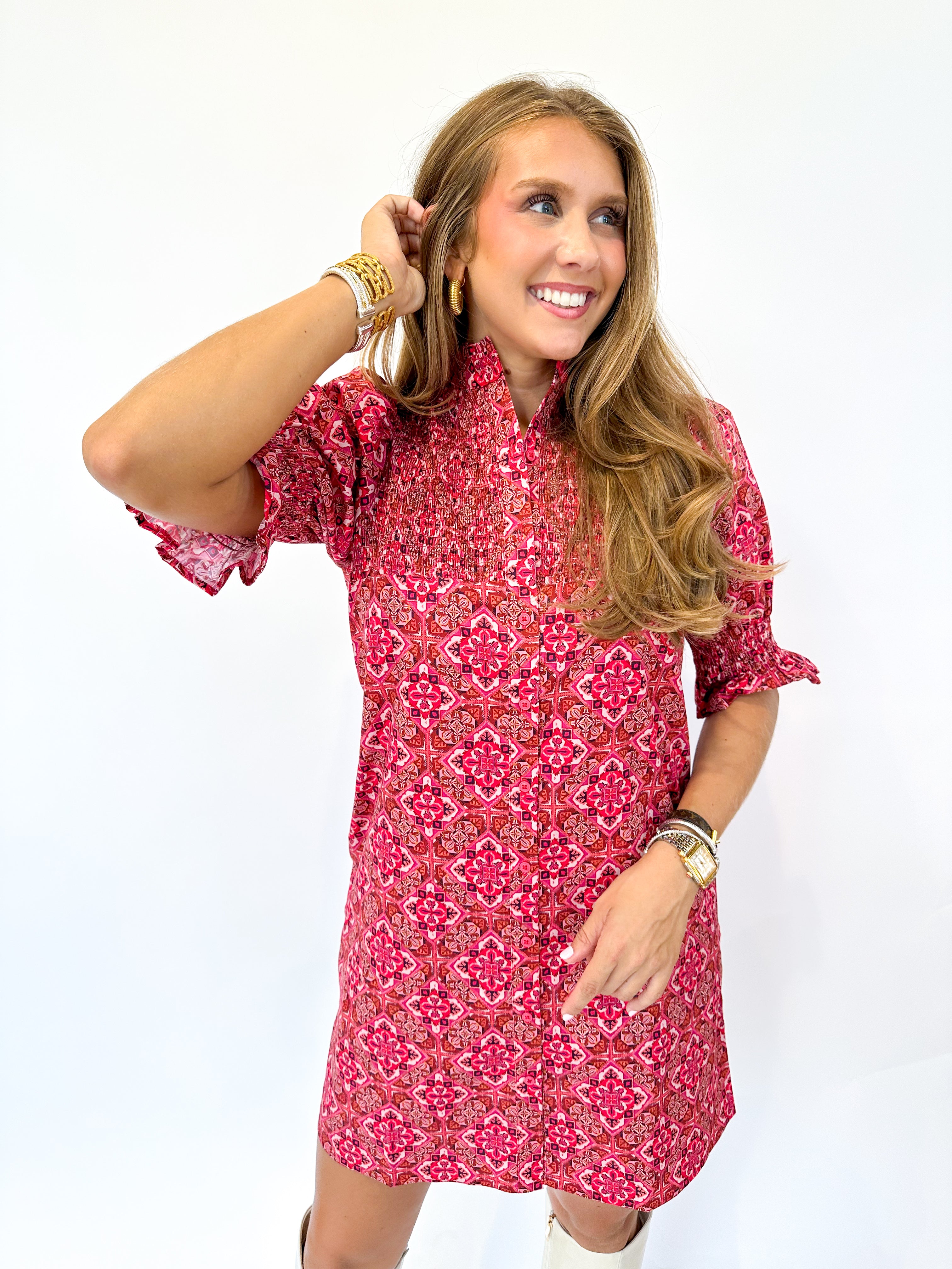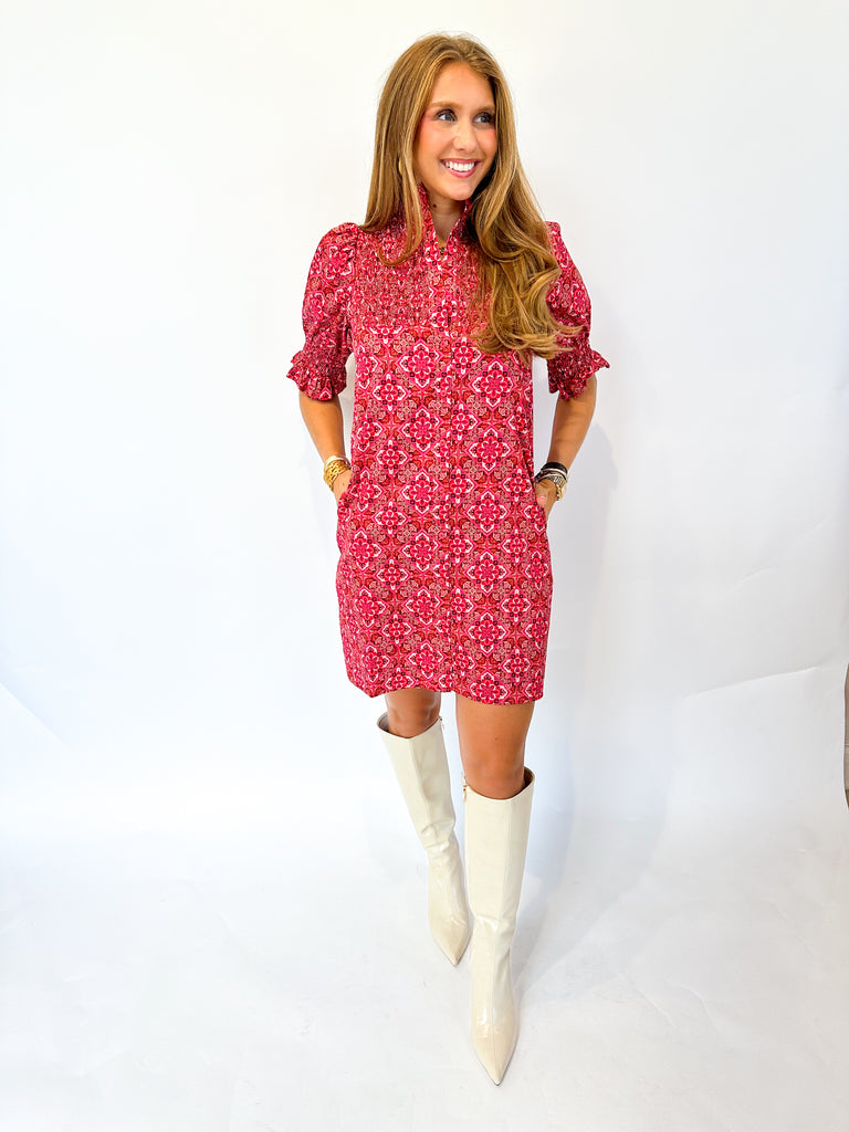 The Aubrey Dress combines timeless style with practical details. Featuring elegant puff sleeves and a smocked chest for a comfortable, flattering fit, this shift dress effortlessly balances charm and ease. Functional pockets add convenience without sacrificing design, making it perfect for day-to-night wear. Elevate your wardrobe with the versatile and stylish Aubrey Dress.