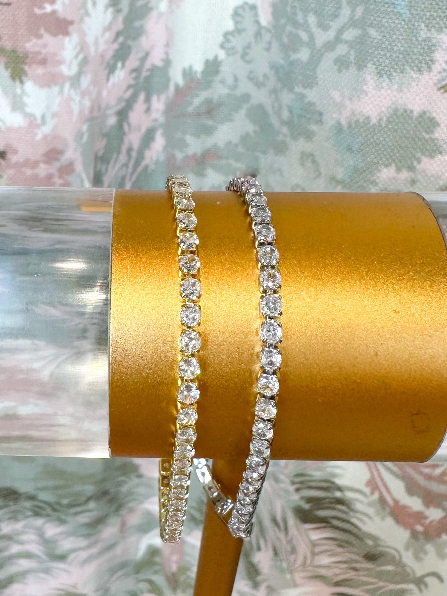 This dainty 3MM CZ tennis bracelet will add a touch of elegance to any outfit. Available in both gold and silver, it is the perfect accessory for any occasion. With sparkling cubic zirconia stones, it will catch the eye and add a touch of glamour to your style. Elevate your look with this stunning tennis bracelet!