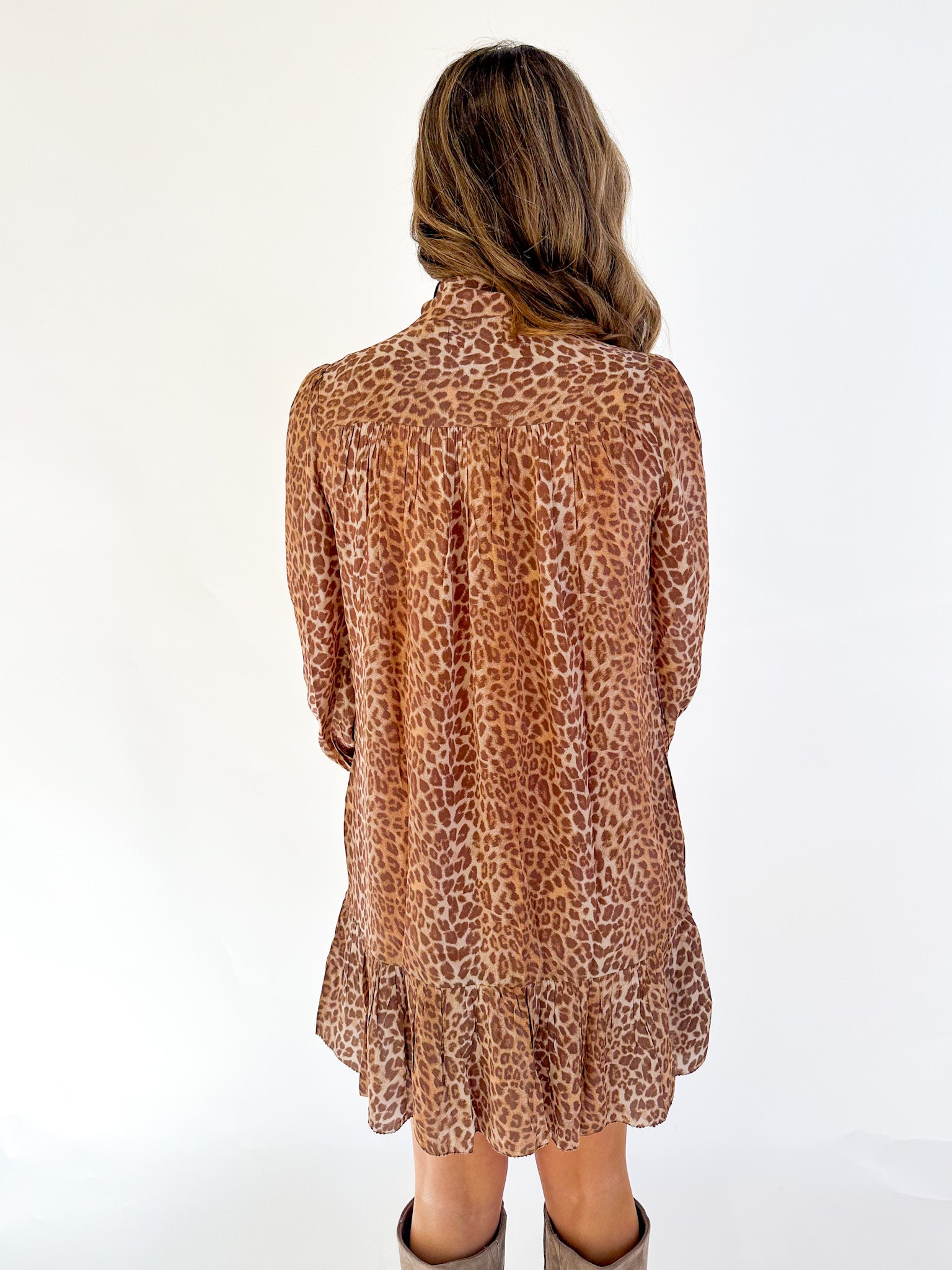 Our darling, feminine Brit Bow blouse just got even better! We added a ruffle hem skirt, turning this vintage 80's inspired silhouette into the cutest Fall mini dress.