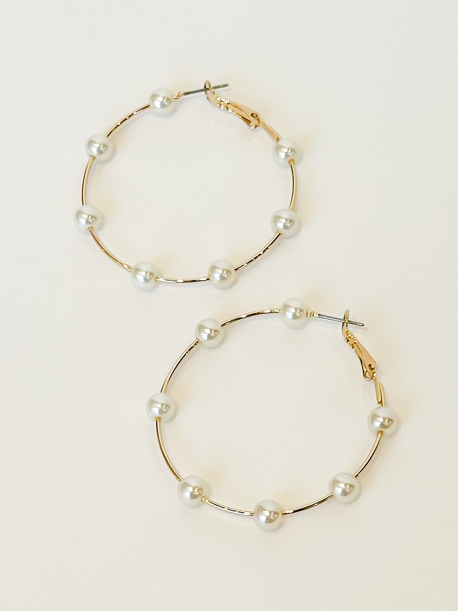 Elevate your style with the Alexis Pearl Hoop earrings, combining the timeless elegance of lustrous pearls with the warm glow of gold. These hoops offer a sophisticated accent to any outfit, perfect for both everyday wear and special occasions. Their classic design enhances your look with subtle luxury and effortless charm.