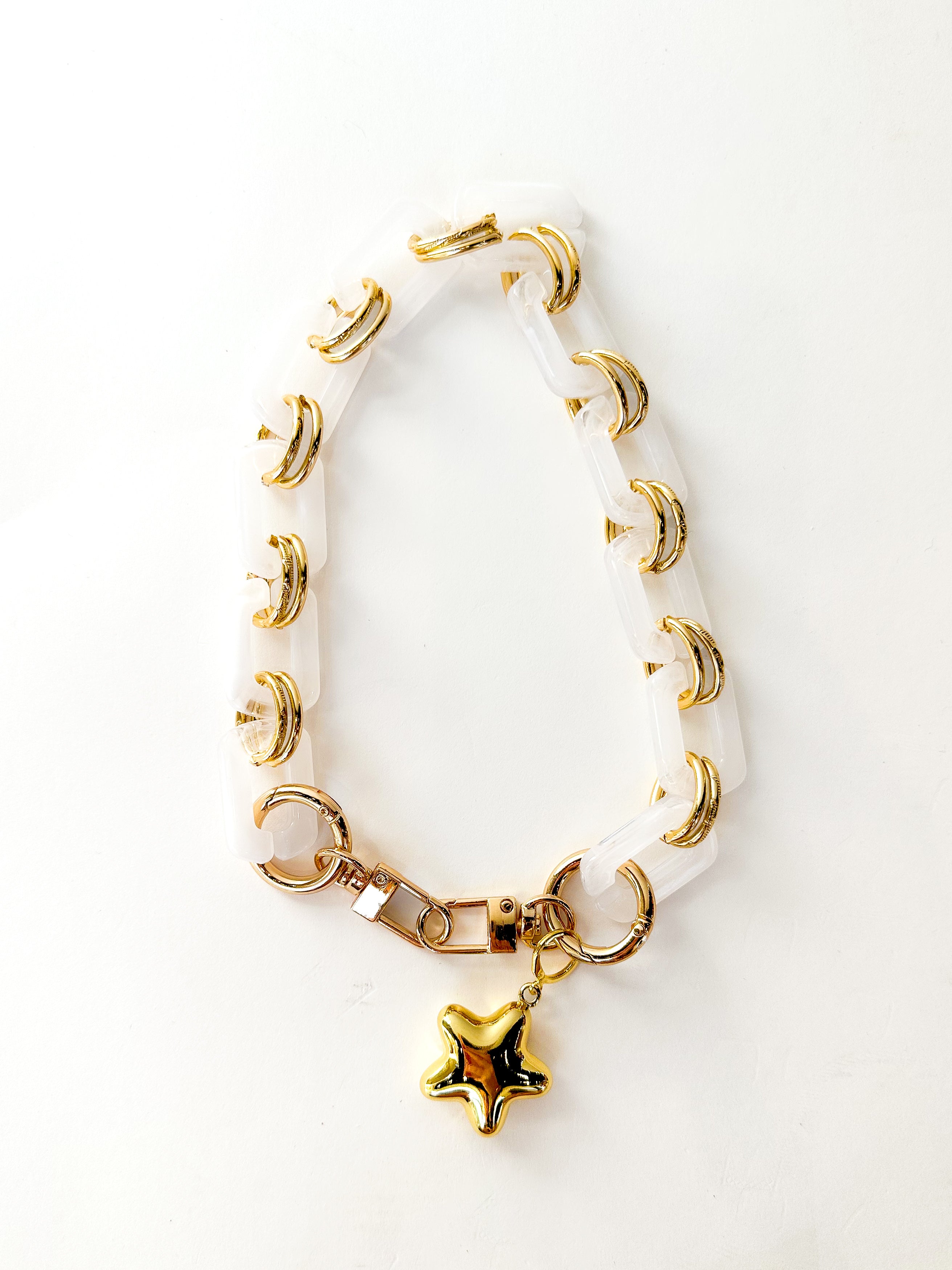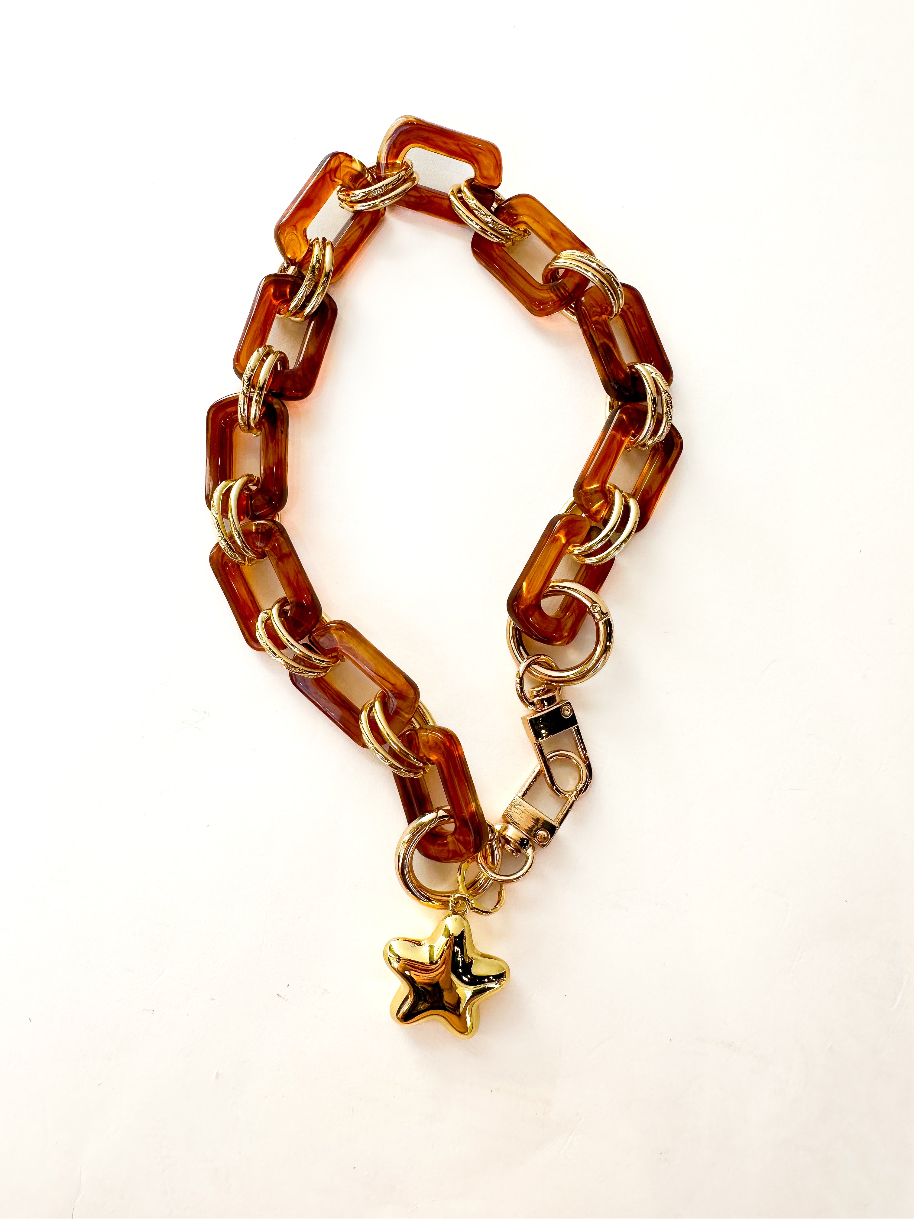 Elevate your style with the Camy Bag Chain, a chic accessory featuring a sleek acrylic design and a charming gold star pendant. Available in two versatile colors, this lightweight chain adds a touch of glamour and personalization to any bag. Perfect for making your everyday look shine with subtle sophistication.