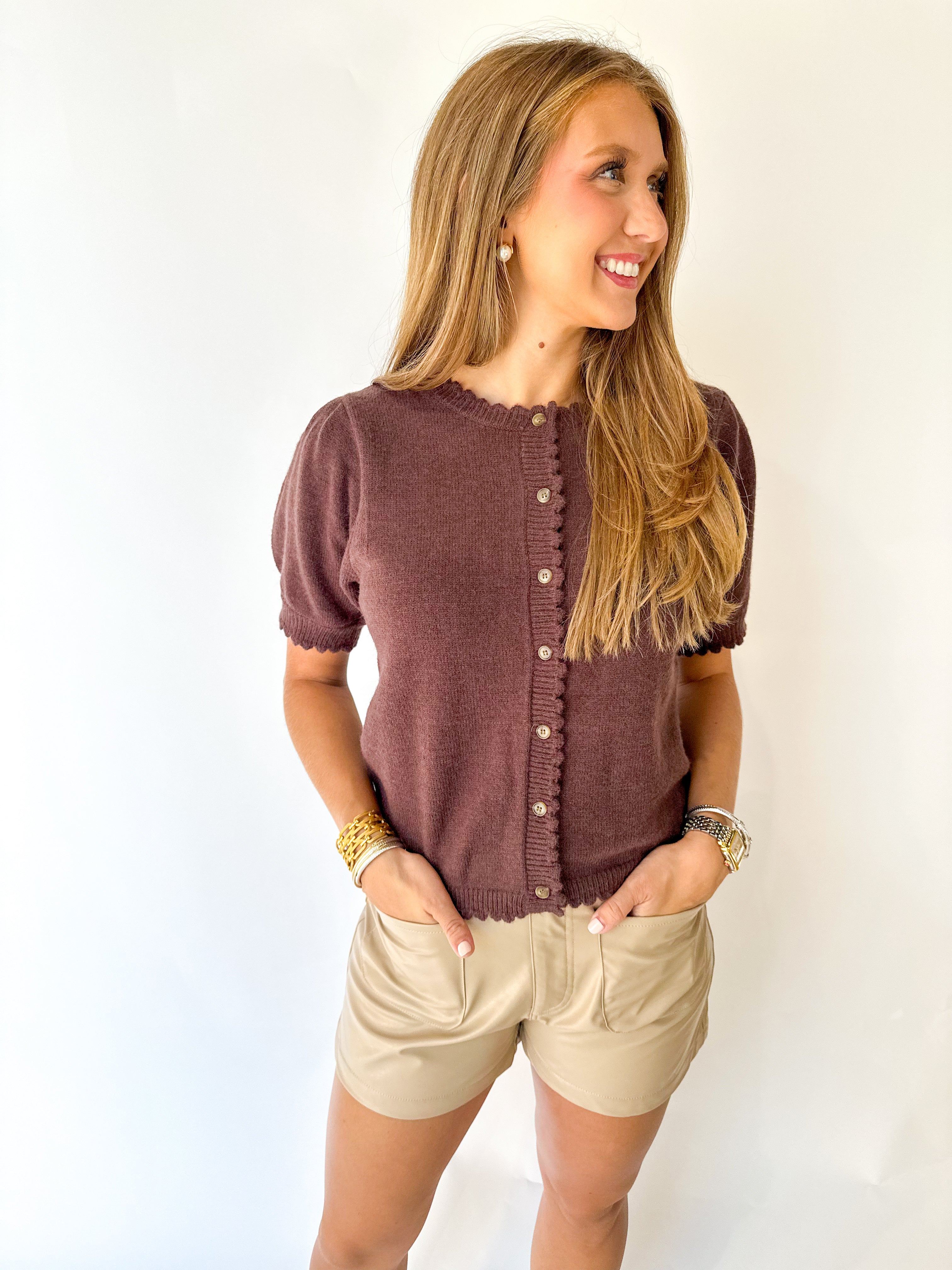These mid-rise pocket leather shorts offer a stylish blend of comfort and edgy sophistication. Featuring a zipper and button fly closure, they provide a secure fit while showcasing patch pocket details for added flair. Available in three versatile neutral fall colors, they effortlessly pair with blouses, sweaters, or your favorite tee, making them a must-have piece for your seasonal wardrobe.