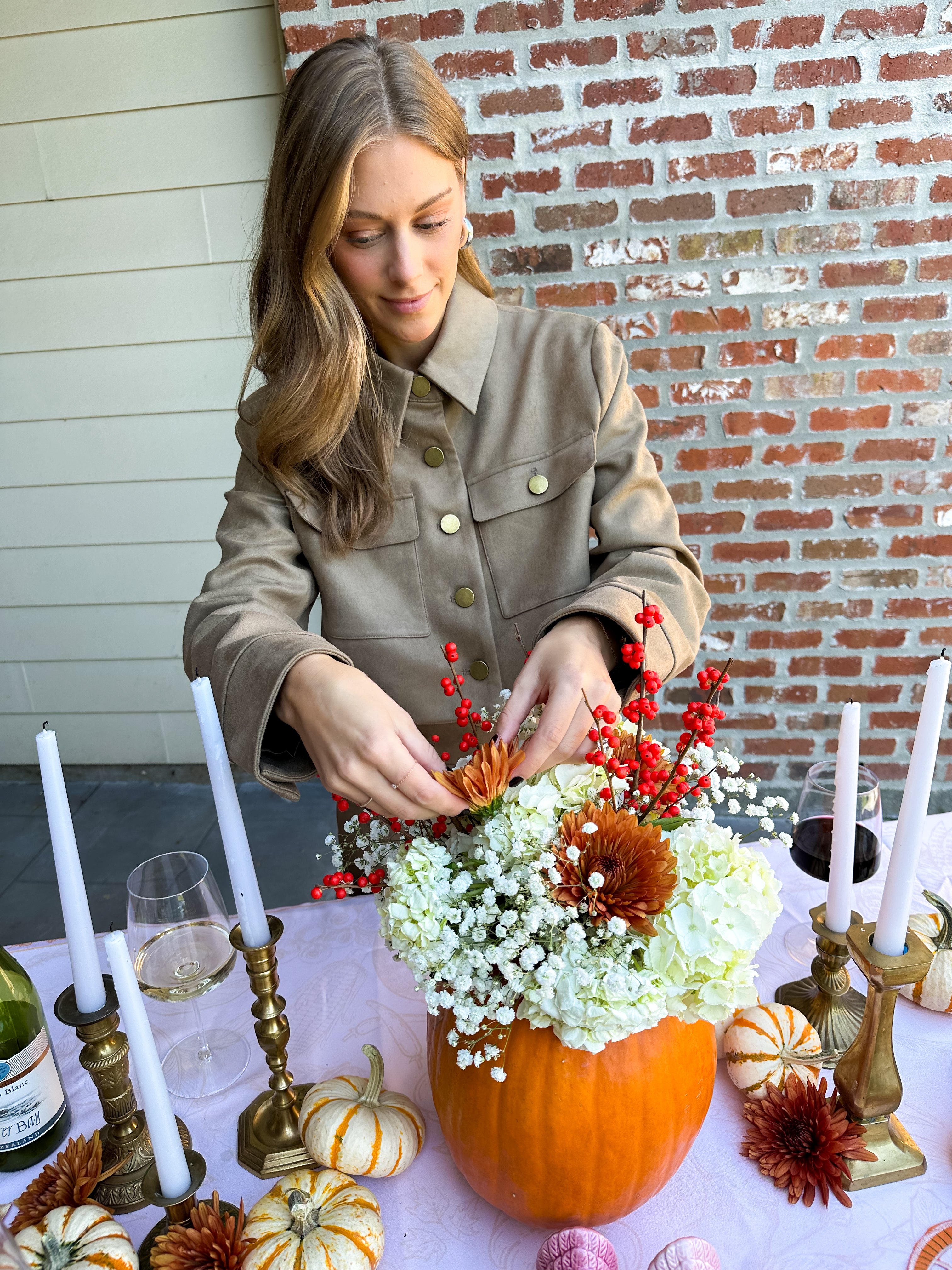 Elevate your Fall wardrobe with this luxe faux suede mini skirt, featuring a practical front pocket and gleaming gold button accent. The perfect standalone piece or pair it with the matching jacket for a polished, coordinated look that effortlessly transitions from day to night.