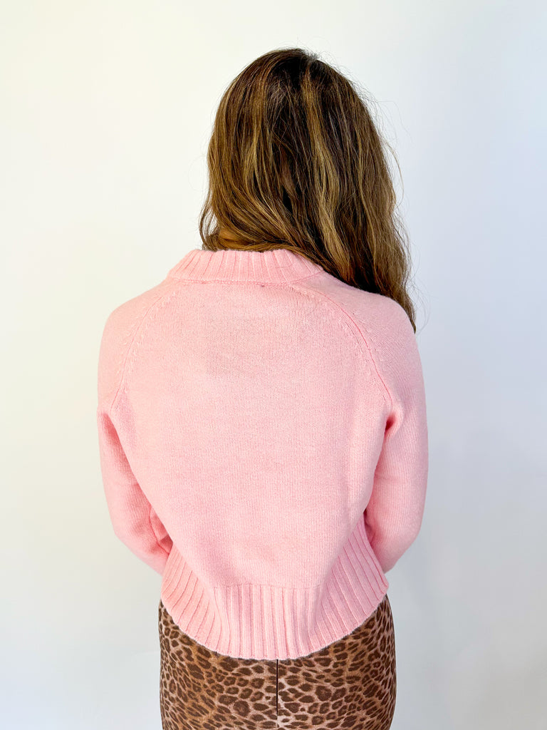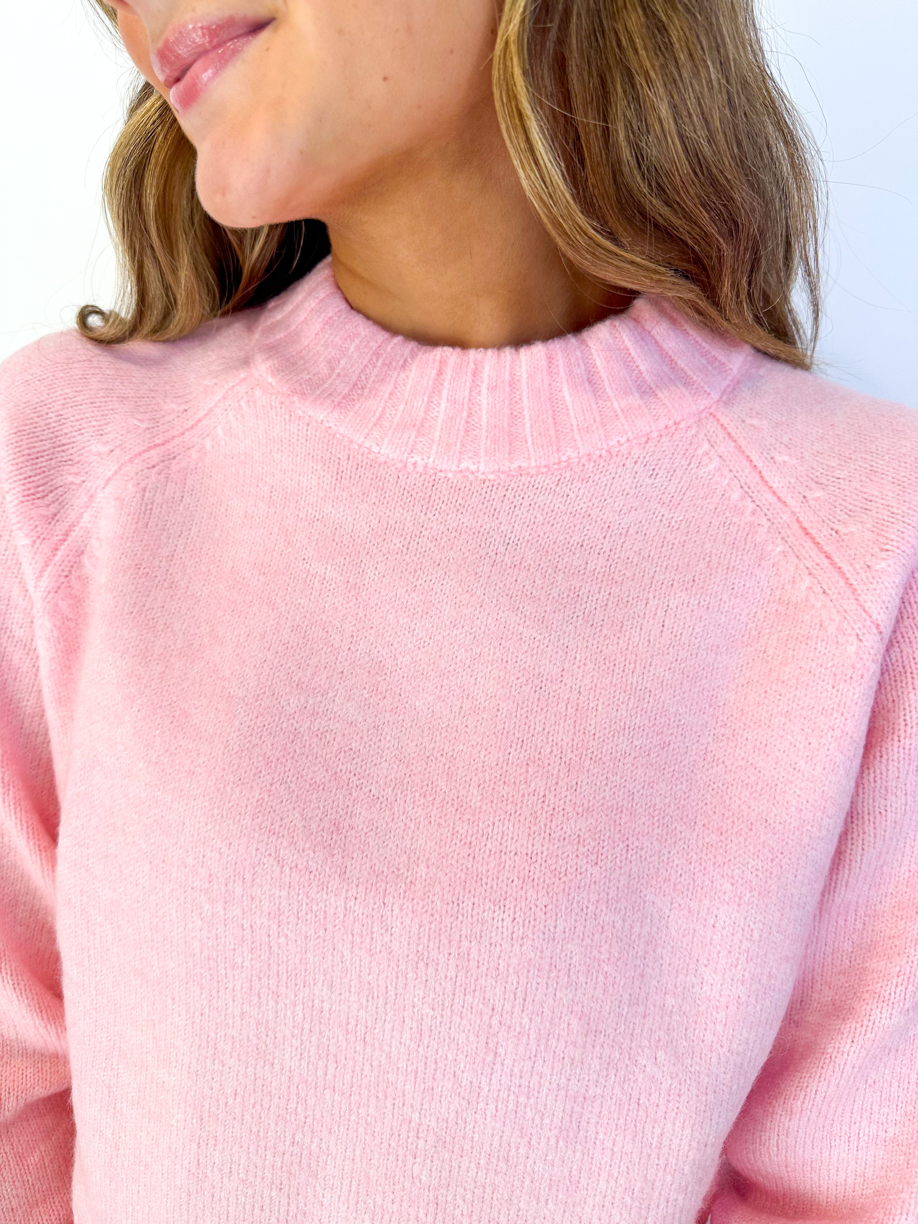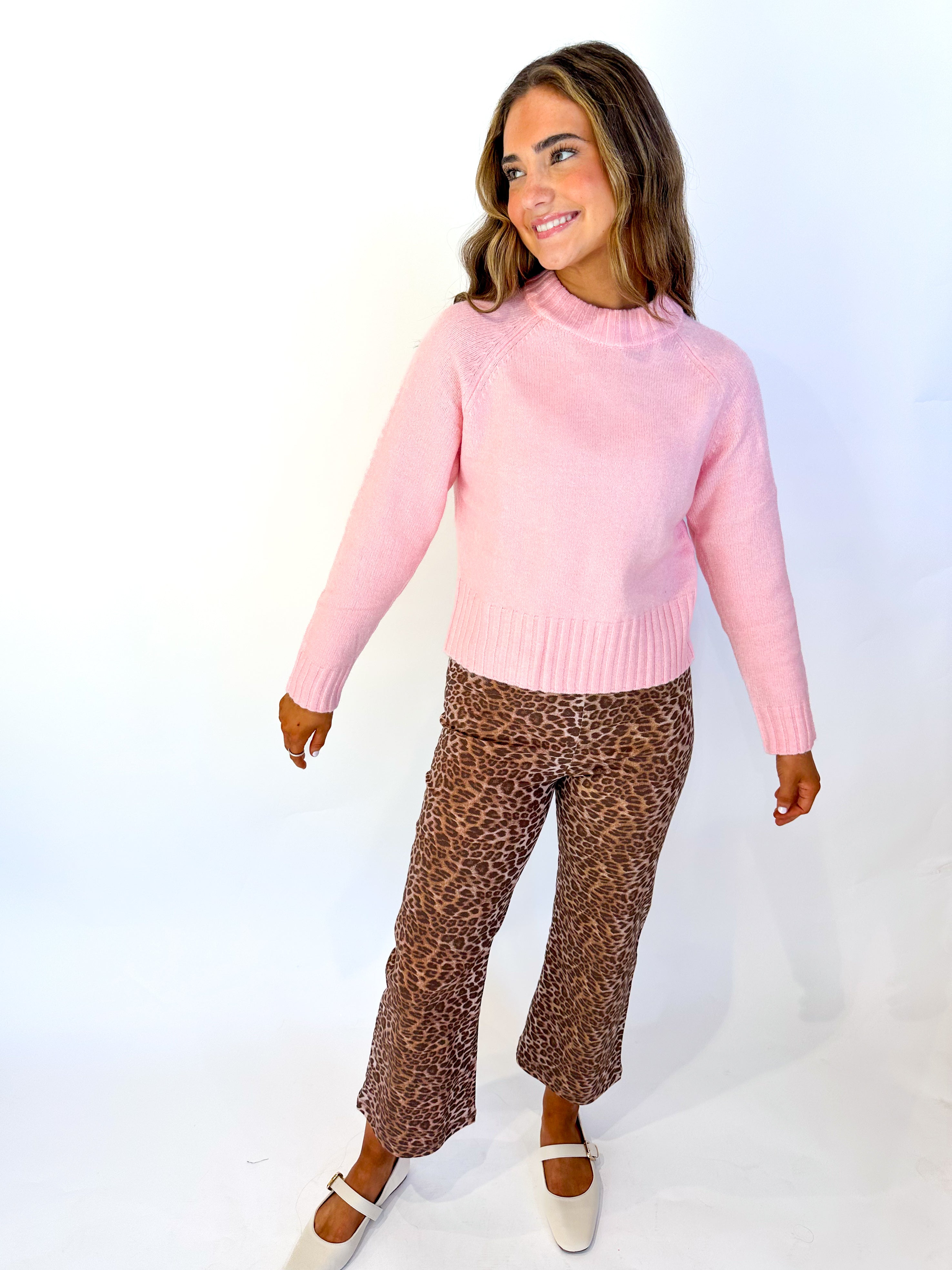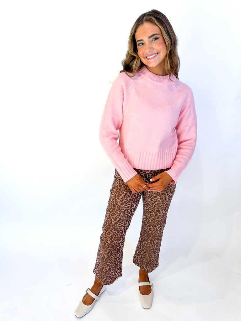 Elevate your cold-weather style with this charming pink crew neck sweater. Featuring a flattering wide ribbed waist and sleeves, it delivers both comfort and contemporary flair. The perfect layering piece to brighten your fall and winter rotation while keeping you wrapped in cozy warmth.