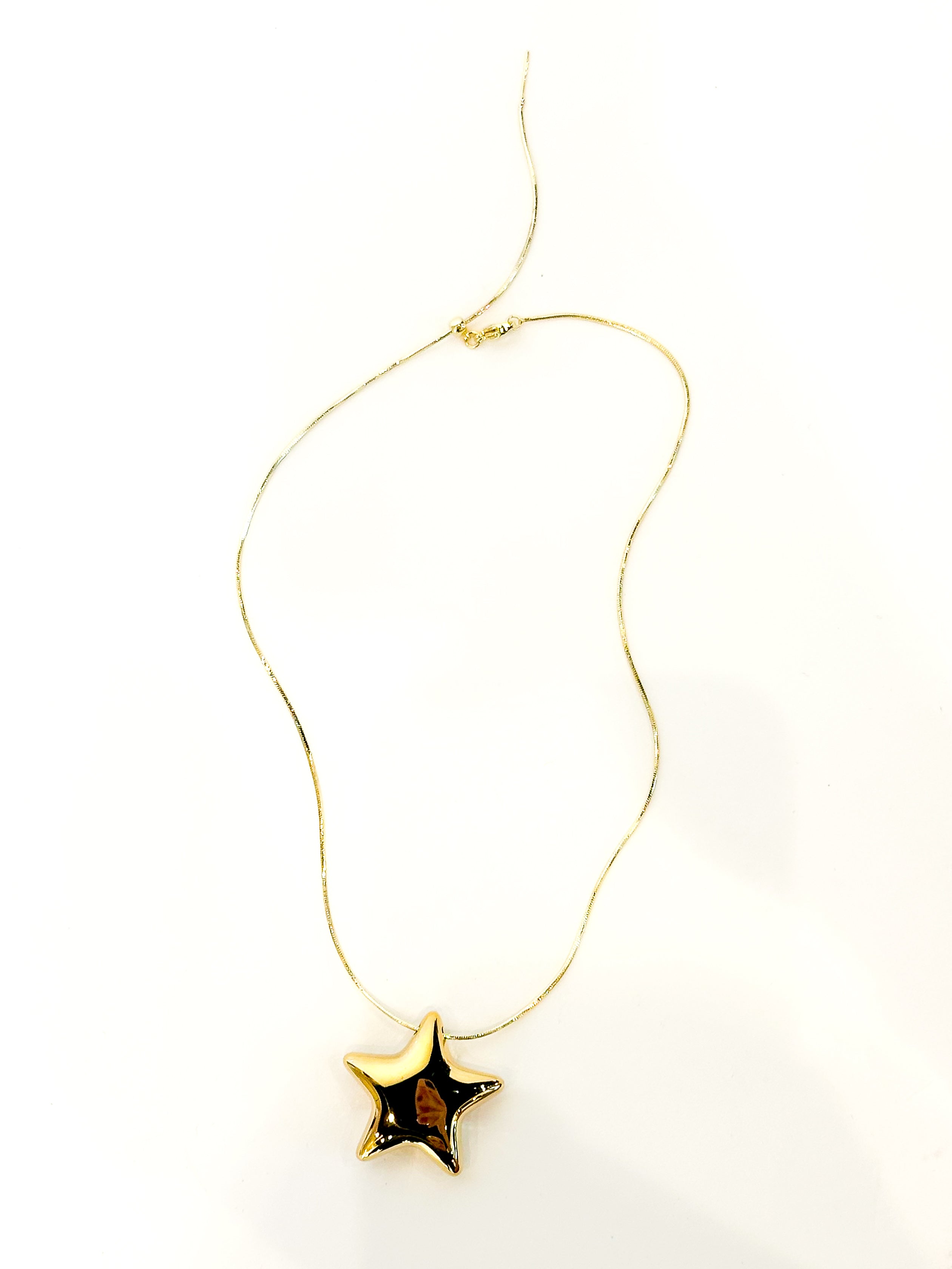 Elevate your everyday look with this puffy gold star necklace, featuring a delicate thin adjustable chain for the perfect fit. Its charming design adds a subtle yet radiant touch, making it ideal for layering or wearing alone. Crafted to catch the light beautifully, this necklace brings a bit of sparkle and personality to any outfit.