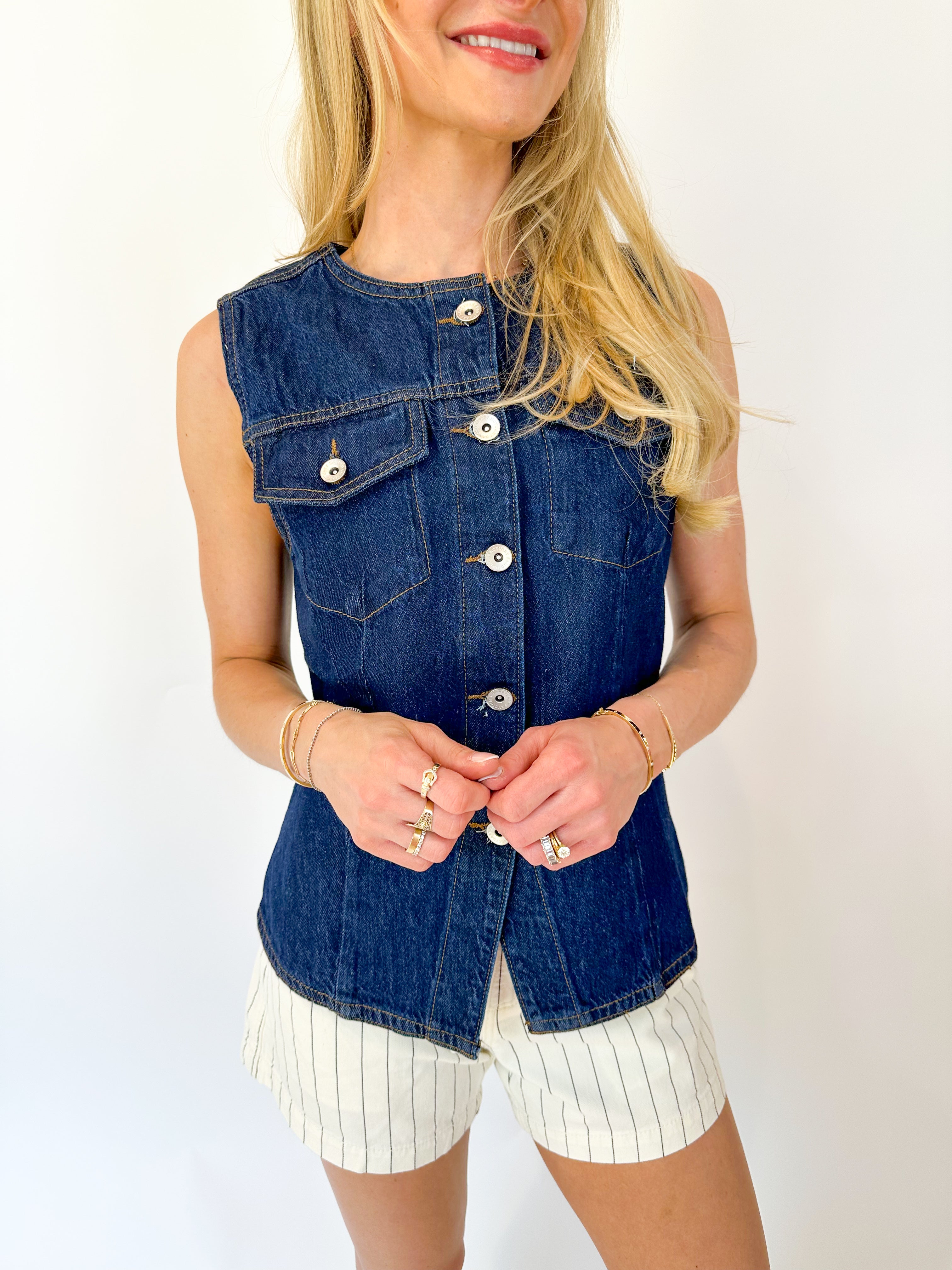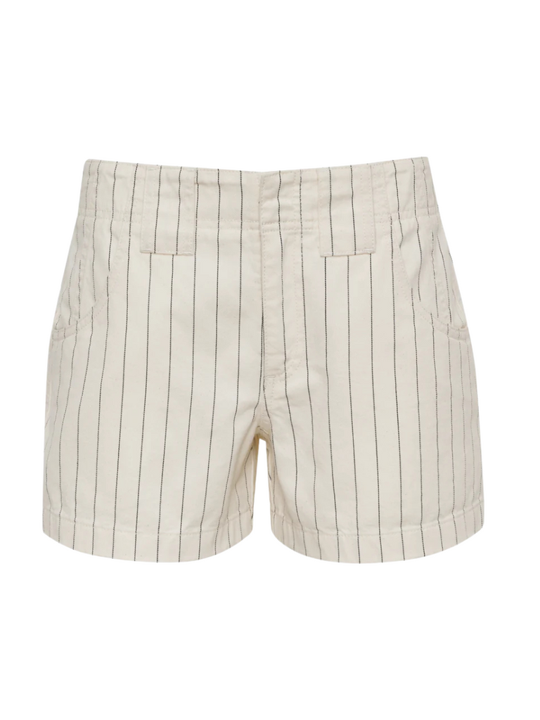 Elevate your summer wardrobe with the Arden Denim Shorts. We love the ivory color with pinstripe detail. Featuring a standard rise and wide belt loops, these shorts offer both comfort and style. The rigid denim fabric ensures durability, while the hook and bar closure adds a polished touch. Stay relaxed and effortlessly chic.