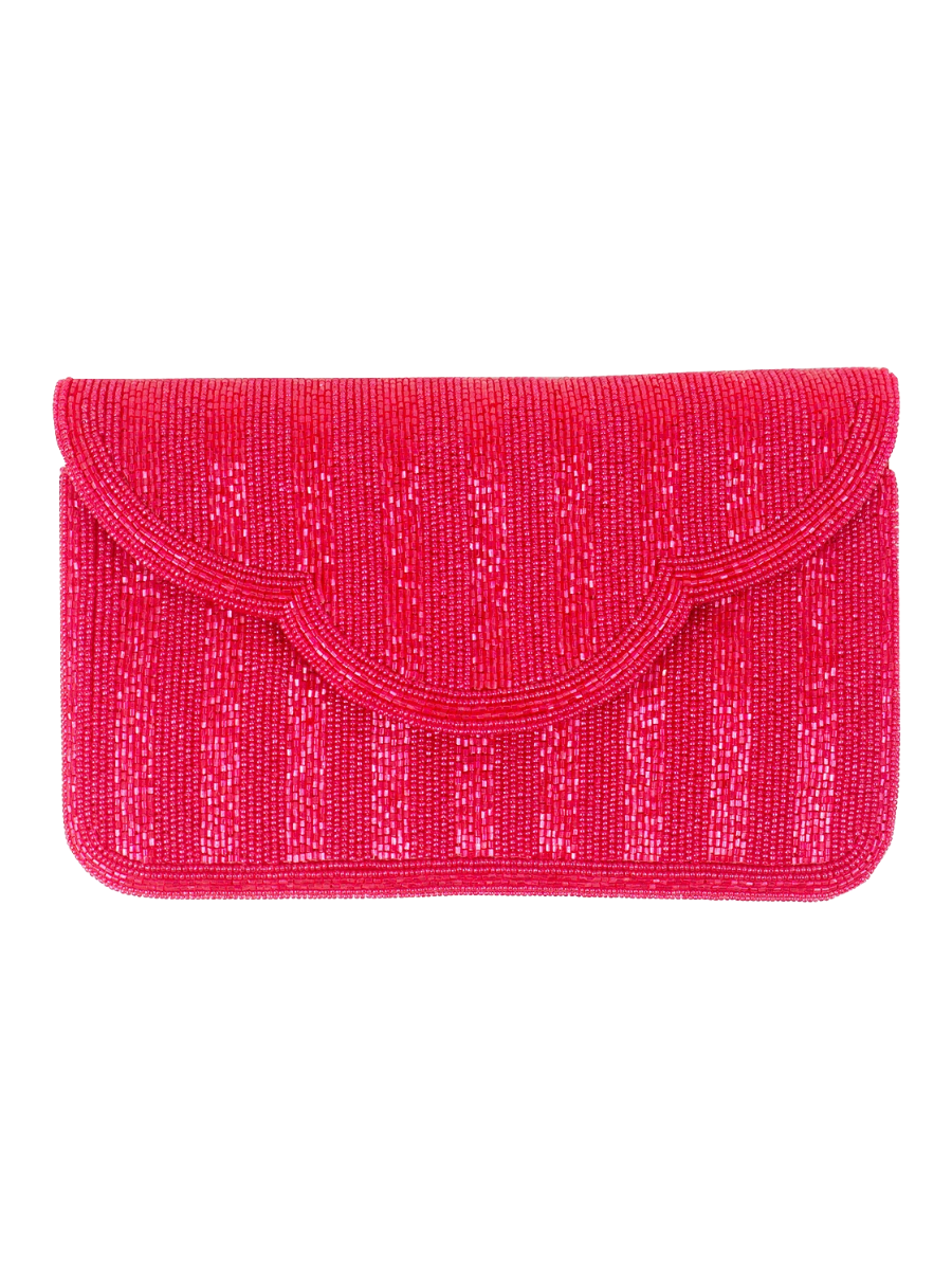 Elevate your look with the Scalloped Edge Beaded Clutch, designed to add a touch of elegance to any event. Choose from two stunning colors—one vibrant shade for those who want a bold statement and a neutral option for a timeless, versatile style. This clutch combines delicate beading with a unique scalloped edge, making it the perfect accessory to complete your outfit and turn heads wherever you go.