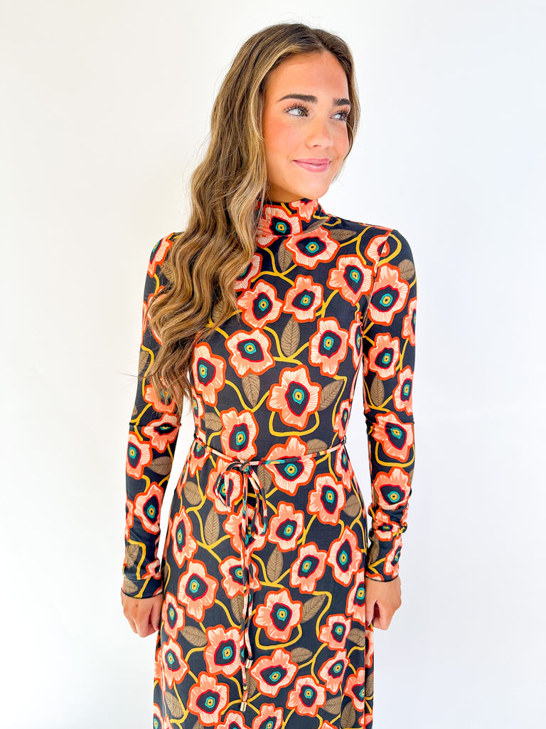 Stevie is a sleek, mock-turtleneck 70's style silhouette that we love for this time of year. Made in a stretch jersey fabric, she's a comfortable, easy-care option perfect to pack for any Holiday getaways.