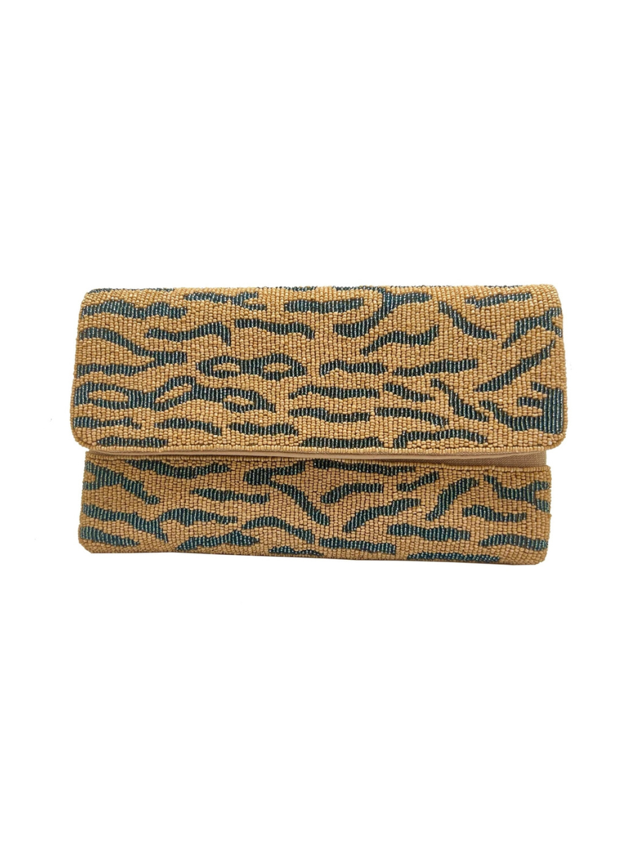 Show your LSU pride in style with the Tiger Stripe Beaded Clutch. This handmade gold beaded clutch features a striking tiger animal print and comes with a convenient chain strap, making it the perfect accessory for game day or any spirited event. Its unique design adds a bold touch while keeping your essentials close, combining fashion with team spirit effortlessly.