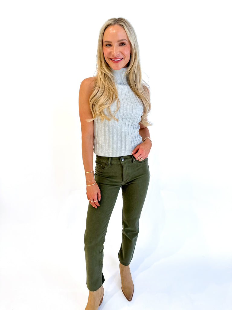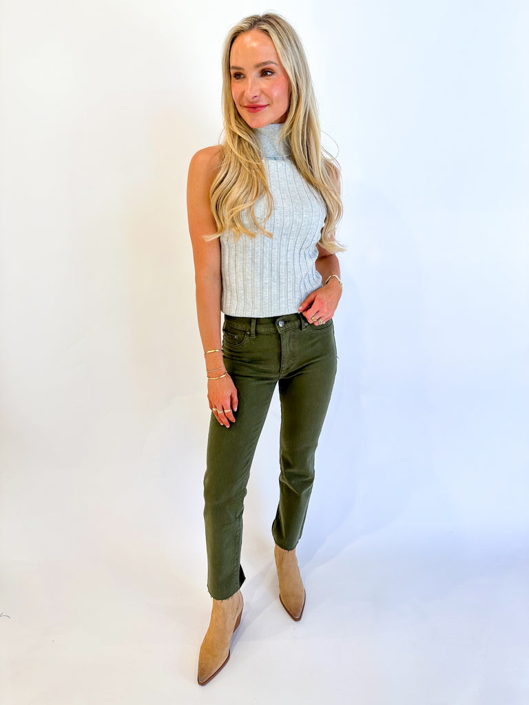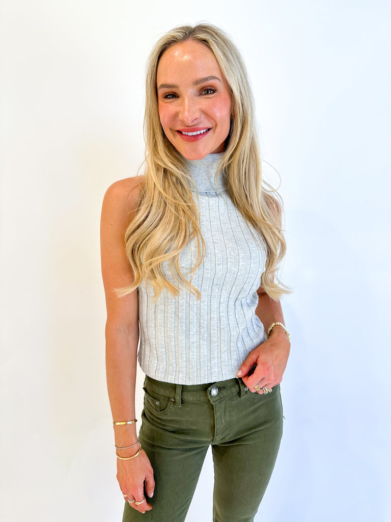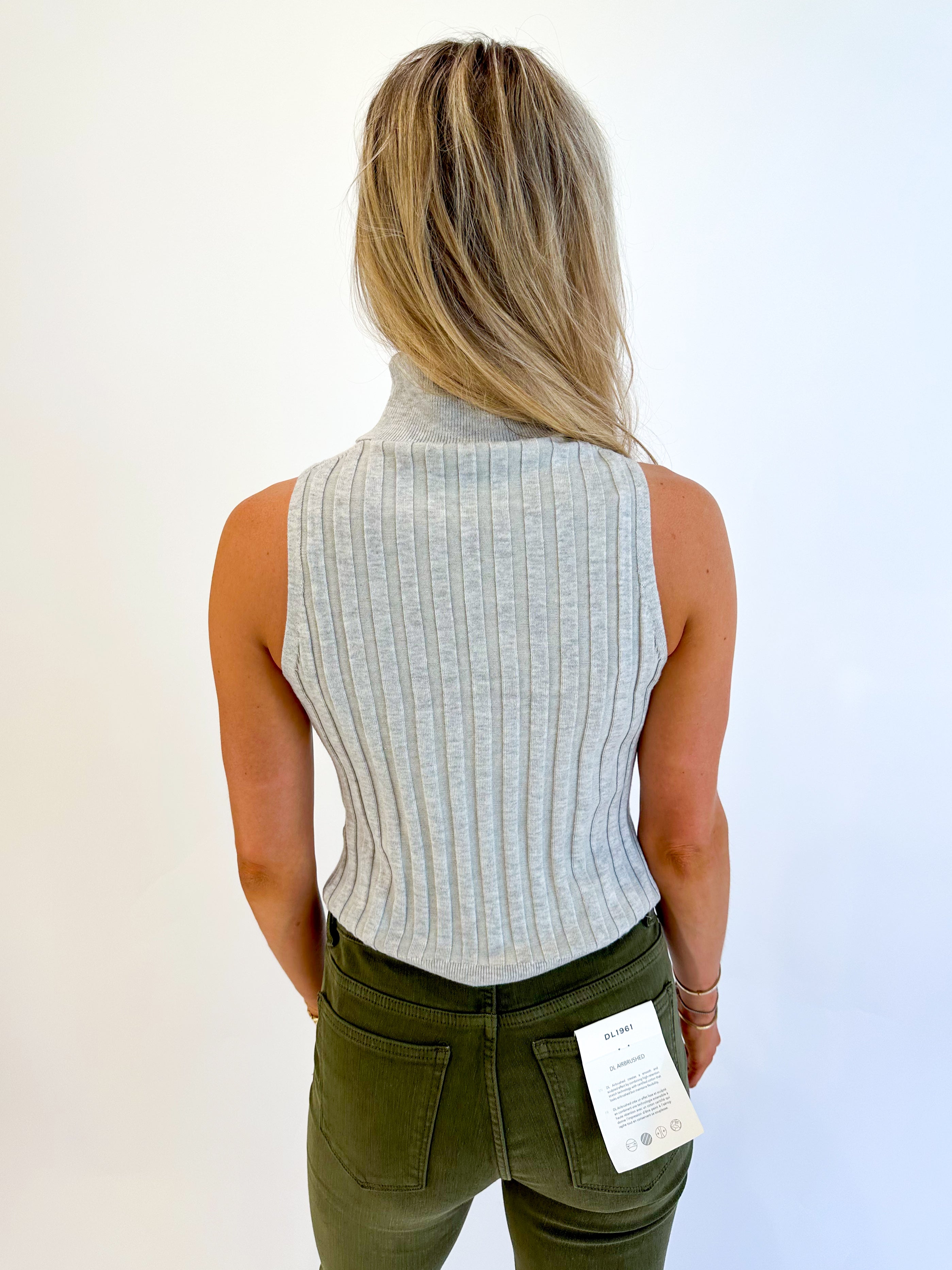 The Turtleneck Tank Sweater is sleek, sculpted, and made to stand out on its own. With an allover wide rib and a high turtleneck, this sleeveless knit hugs the body for a flattering, modern fit that’s anything but basic.