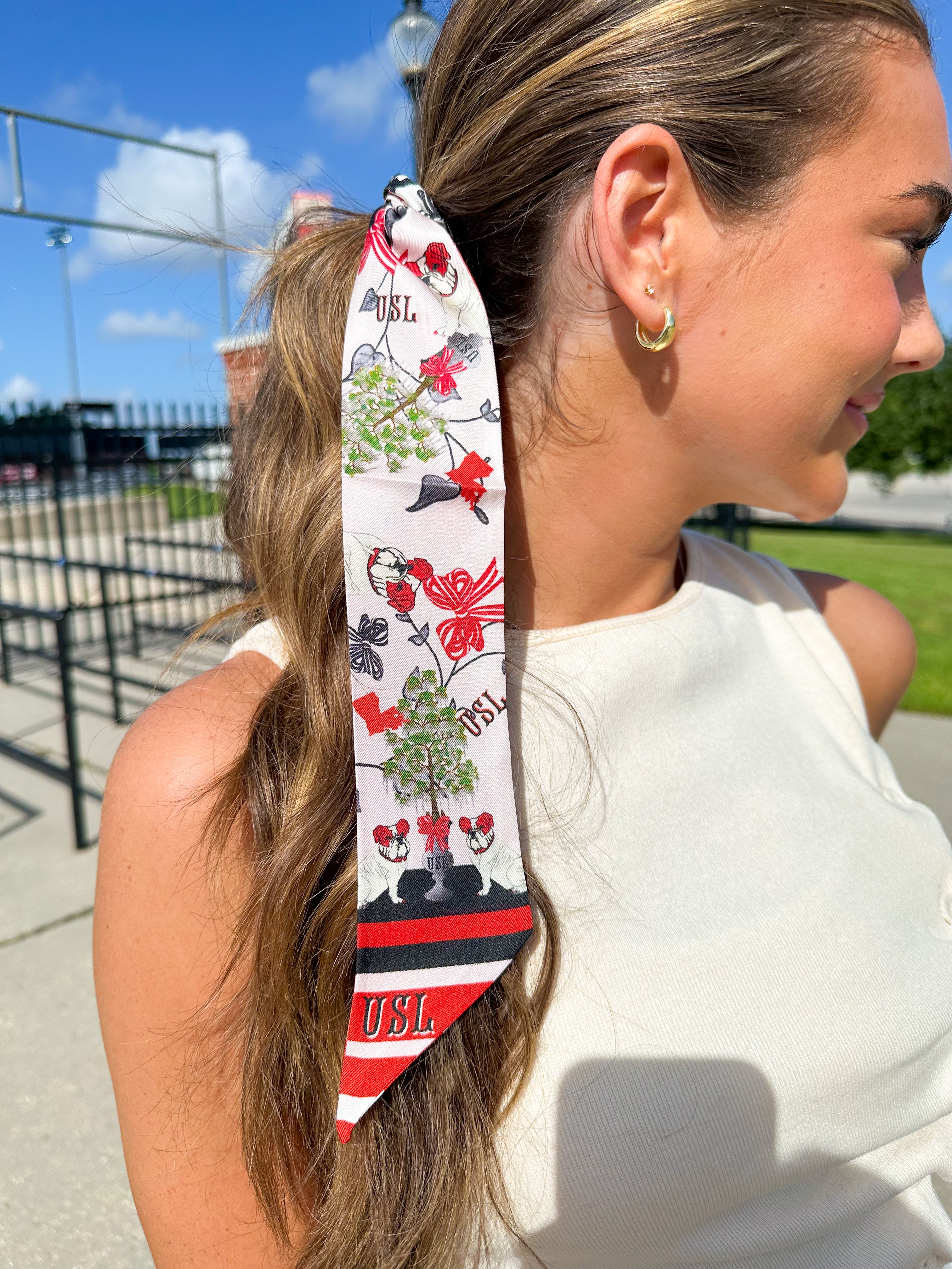Add a touch of vintage charm to your look with the USL Retro Twilly. Crafted from smooth satin, this stylish accessory features a retro-inspired design that proudly celebrates the USL Bulldogs. Perfect for tying around your neck, wrist, or clear bag, it’s a versatile way to show your team spirit with flair.