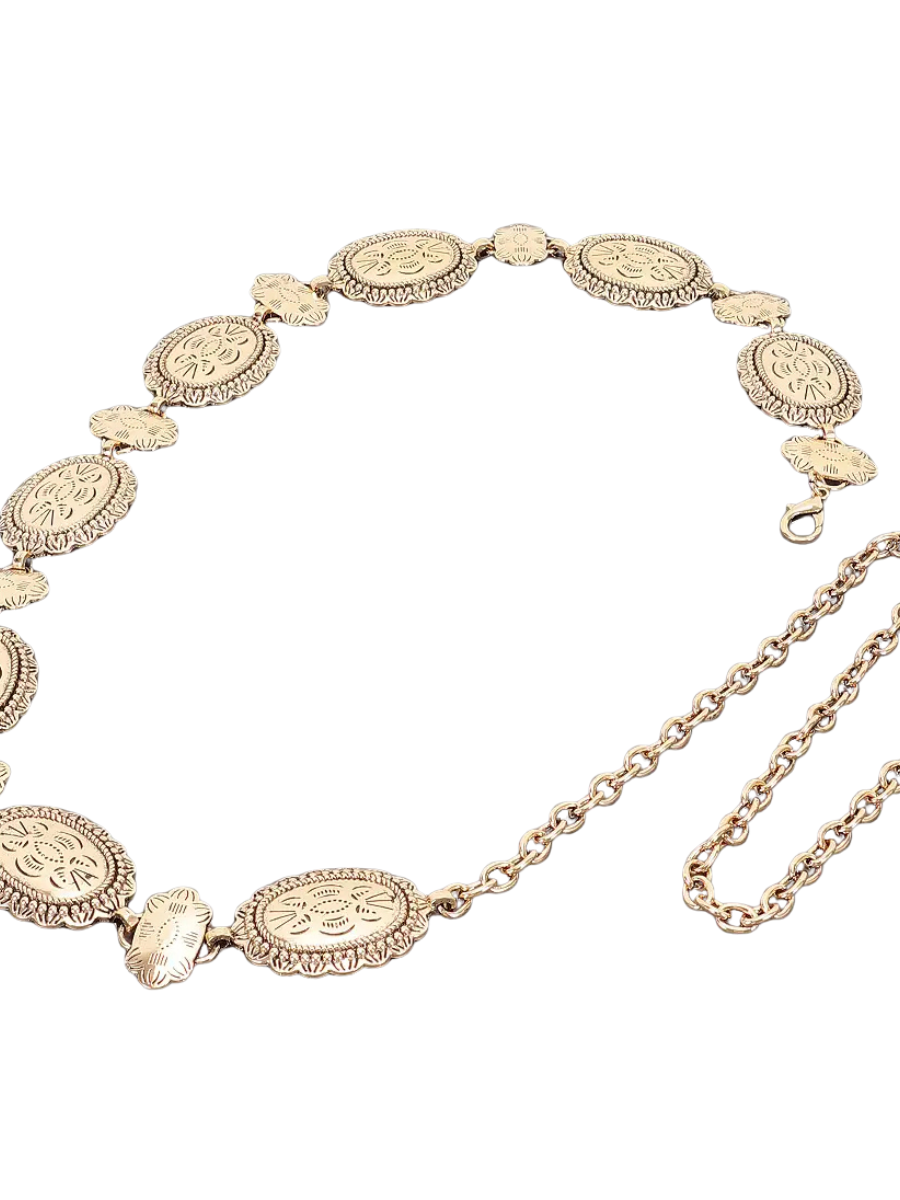 Channeling old-school glamour with a modern twist, this chain belt features vintage medallion detailing that instantly elevates any outfit. Layer it over dresses, cinch it at the waist, or wear it solo for that effortless, statement-making vibe. Perfect for adding a touch of retro charm to your everyday look.