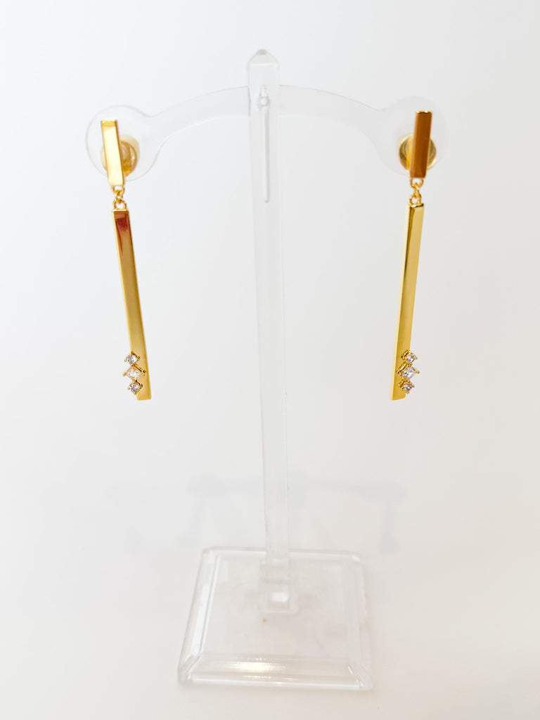 Elevate your style with the Watch Me Now Linear Drop Earring, featuring a delicate thin gold design and a secure post back for comfortable wear. The subtle trio of small stones adds just the right touch of sparkle, making these earrings perfect for both everyday elegance and special occasions.